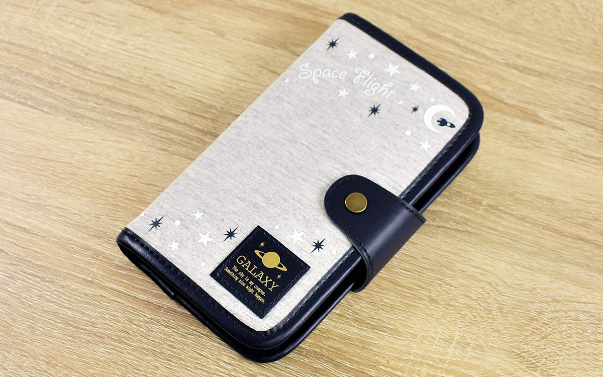 スウェットのような優しい手触りのケースに入った同商品。ケースの大きさは約20(縦)×11(横)×3cm(厚み)ほどで、表側には星やロケットのイラストも描かれています。