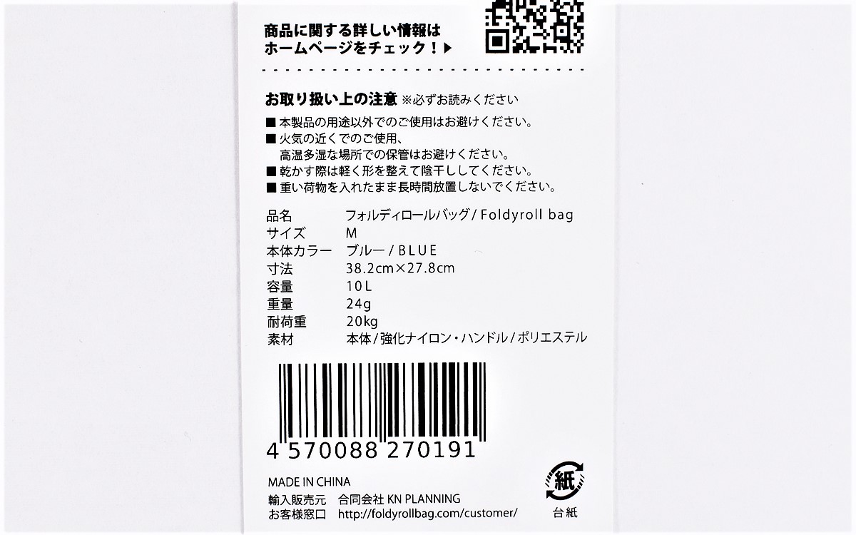 ●形状記憶加工でサッとたためる「Foldyroll bag」(KN PLANNING)