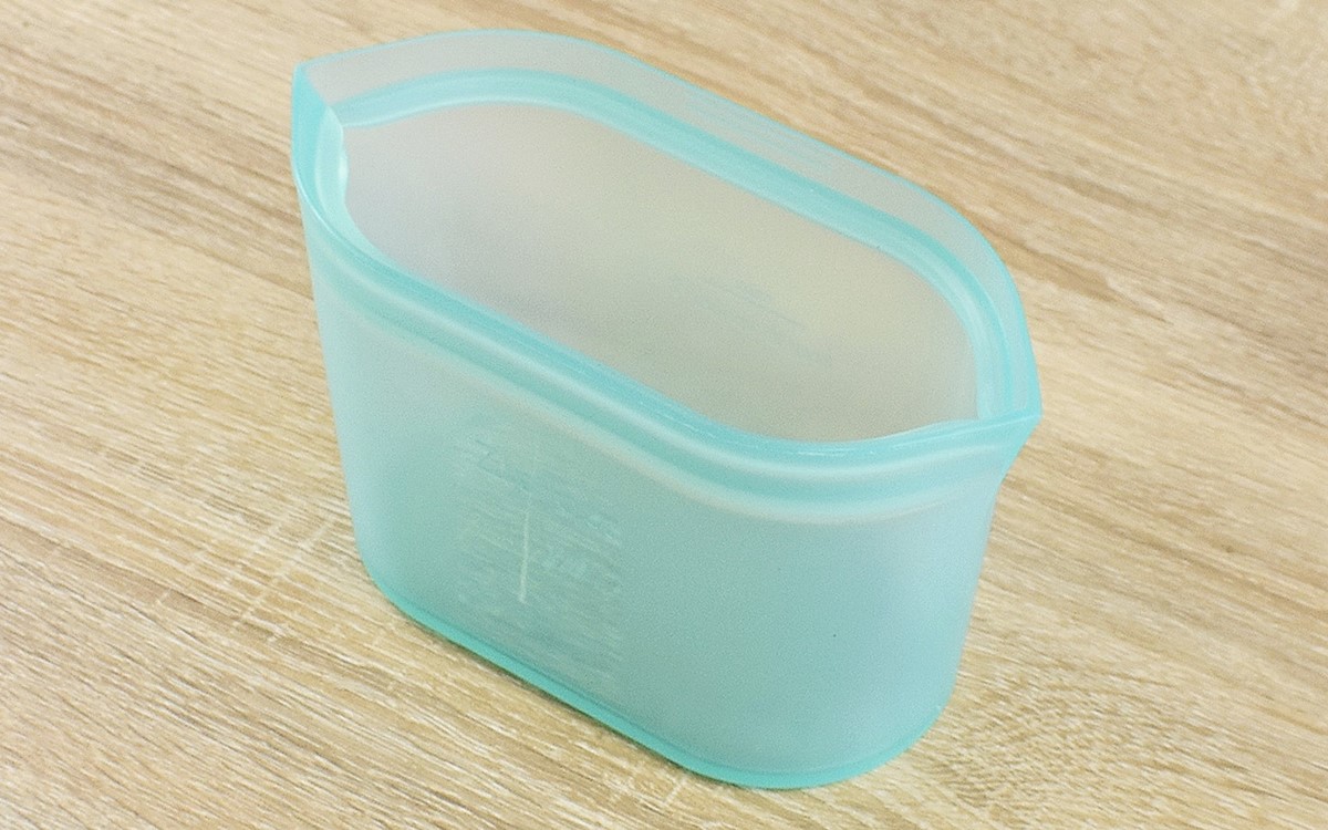 スーパーで肉や魚を買ったら、なるべく小分けにして冷凍保存するよう心がけている私。いつもはビニール袋とラップ、プラスチックの使い捨て容器などに入れているため、使い終わったあと大量のゴミになってしまう点が気になります。そんなときに便利なのが、東急ハンズで販売されている「ZipTop ディッシュS ティール」(1980円/税込)。タッパーやジップ袋のいいとこどりをしたような、シリコーン製の容器です。