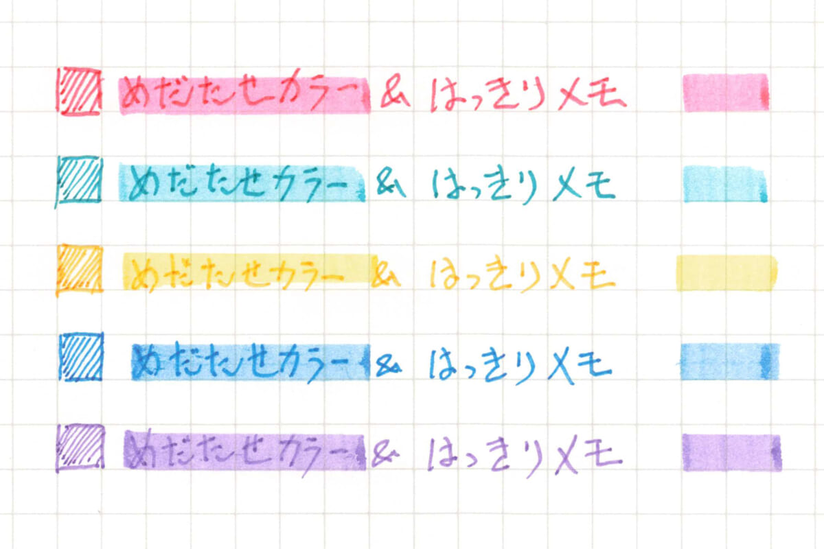 左:カラータイプ(めだたせカラー+はっきりメモ)5色