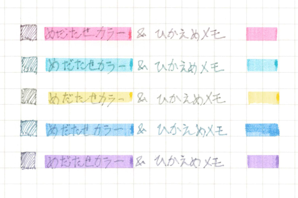 そう、はっきりメモの「カラータイプ」はラインと同系色のより強いカラー、ひかえめメモの「グレータイプ」は、ラインと同系色のグレーカラーで書けるようになっているのだ。