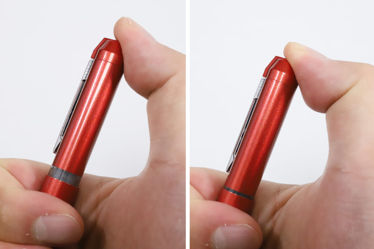 黒・赤の2色ボールペン(エマルジョンインク)+0.5mmシャープペンシルという、最近の多機能ペンとしてはごくベーシックな構成である。
