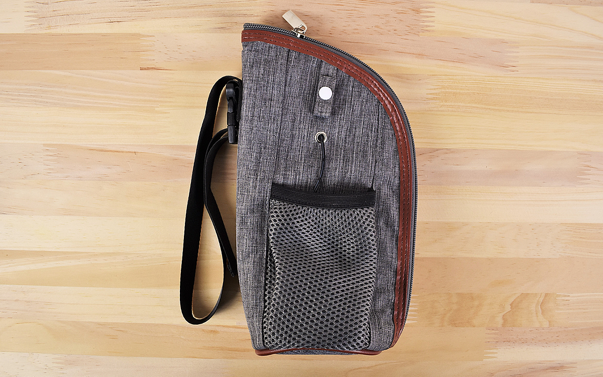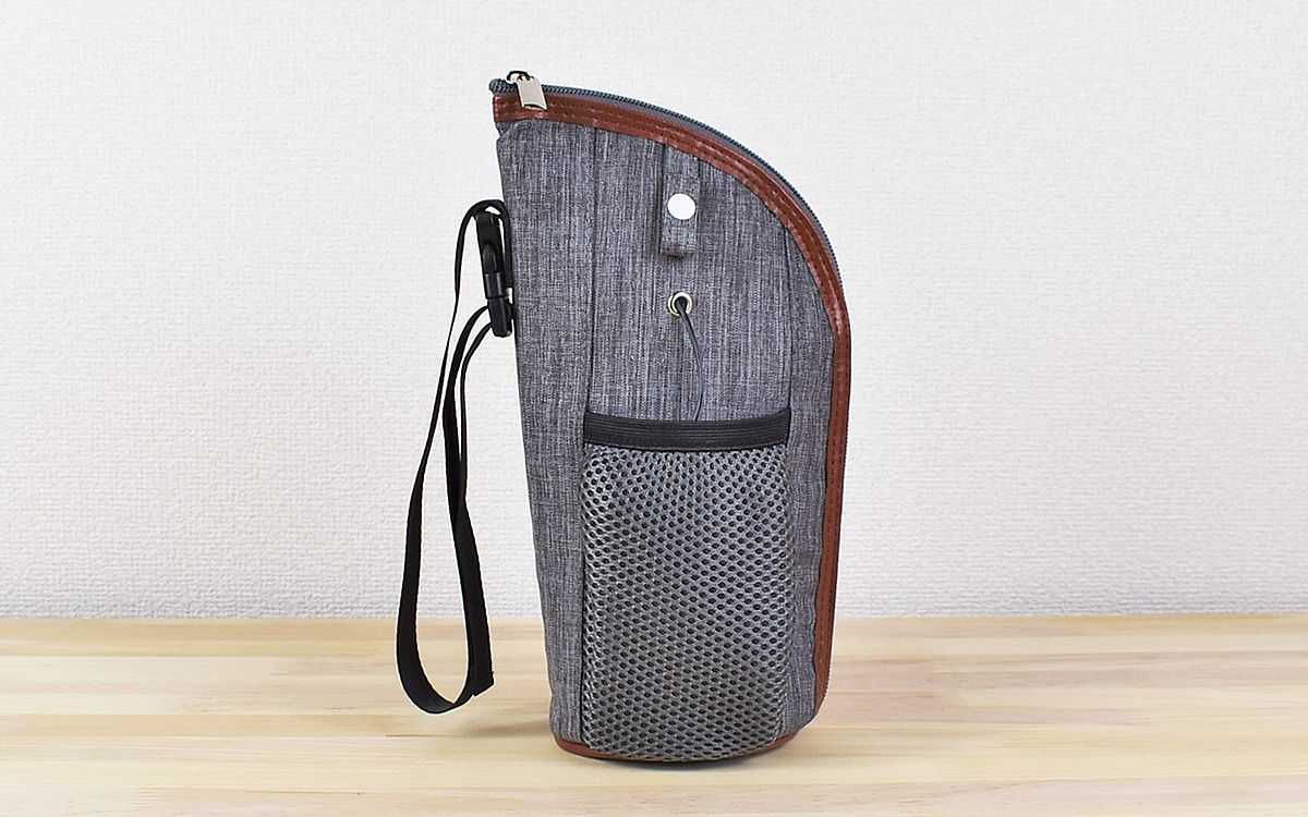 グレーを基調にしたデザインの同商品。普段使いのポーチとしても違和感を感じさせない、スタイリッシュな見た目に驚かされます。サイズは150(幅)×250(高さ)×100mm(奥行)で重さはわずか126gしかなく、保温用ヒーターが内蔵されているとは感じさせません。