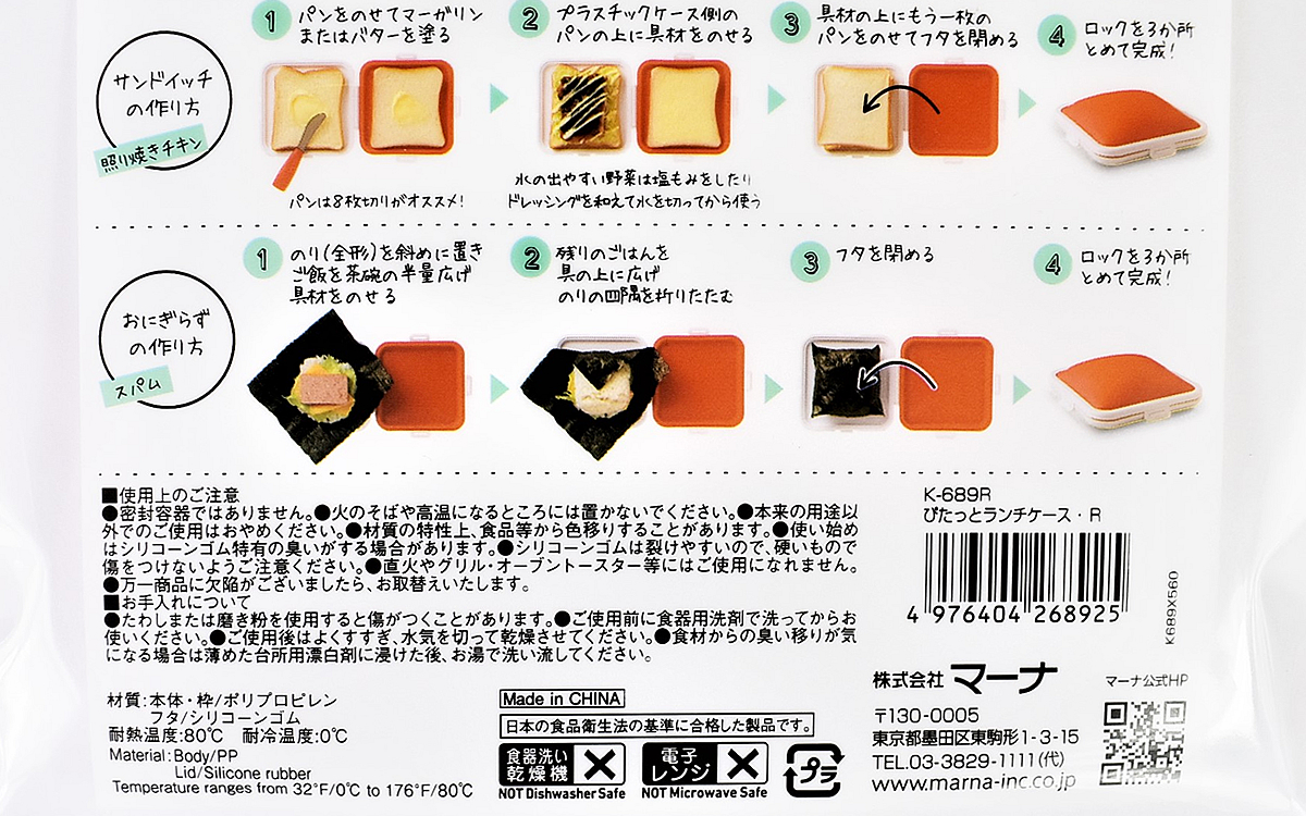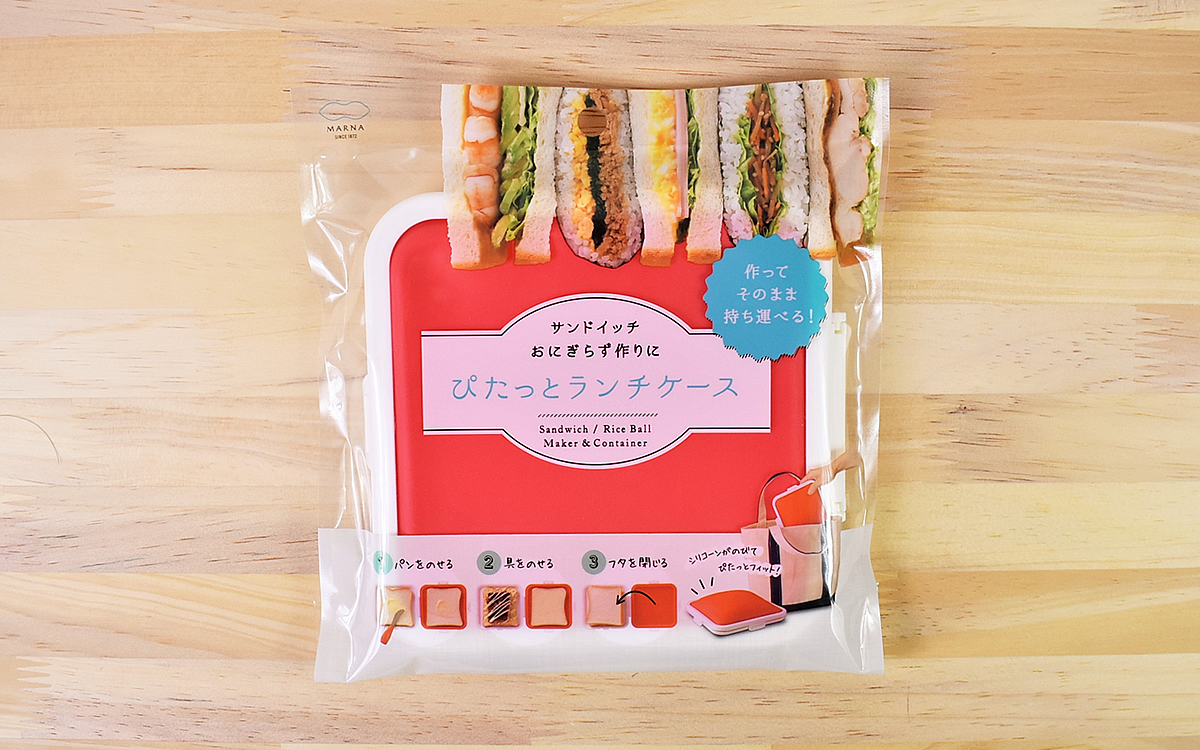 1872年創業の「マーナ」では、キッチン用品を中心とした雑貨や日用品を数多く展開中。同社の「ぴたっとランチケース」は、挟むだけでサンドイッチや“おにぎらず”が作れるアイデア商品です。「ZIP!」「ヒルナンデス!」などの情報番組で取り上げられたことで注目を集め、「パンにもご飯にも使えるところが便利」「コンパクトで持ち運びやすい!」と話題に。どれくらい簡単に作れるのか、さっそくレビューしていきます。