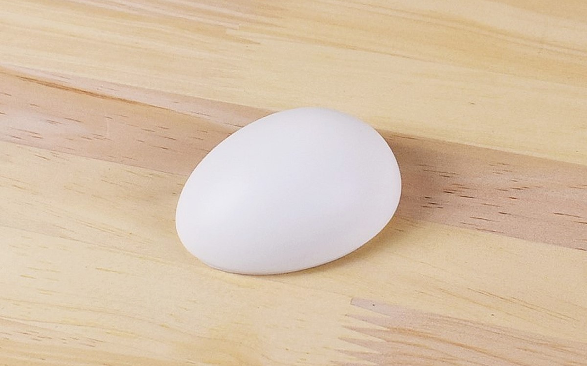 同商品は、半分にカットされた卵の形を模したアイテム。なめらかな表面の陶器製で、約67(縦)×50(横)×28mm(高さ)ほどの大きさです。