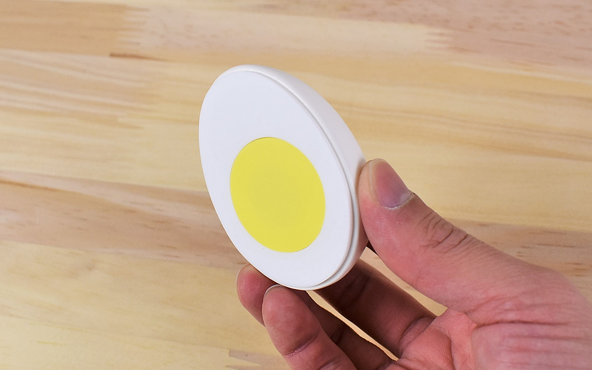 裏面にはすべり止めのシリコーンが貼りつけられており、中央には黄身の模様が。子どものころに遊んだままごとのおもちゃを思い出しましたが、テーブルに置くとしっかりすべり止めの役割を果たしてくれます。