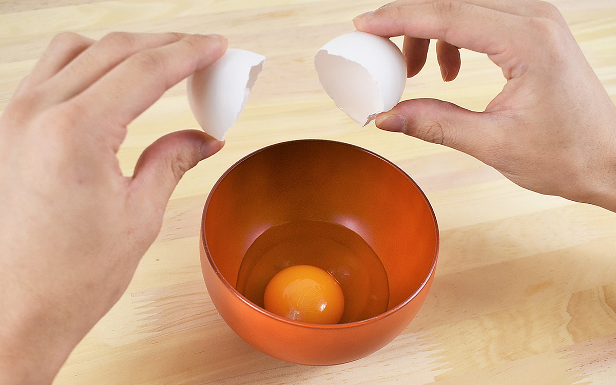 試しに生卵を軽くぶつけてみたところ、陶器に当たったところから横にヒビが入って割りやすい状態に。あまり力を入れなくてもきれいに割れるため、今までのように握りつぶす心配もありません。