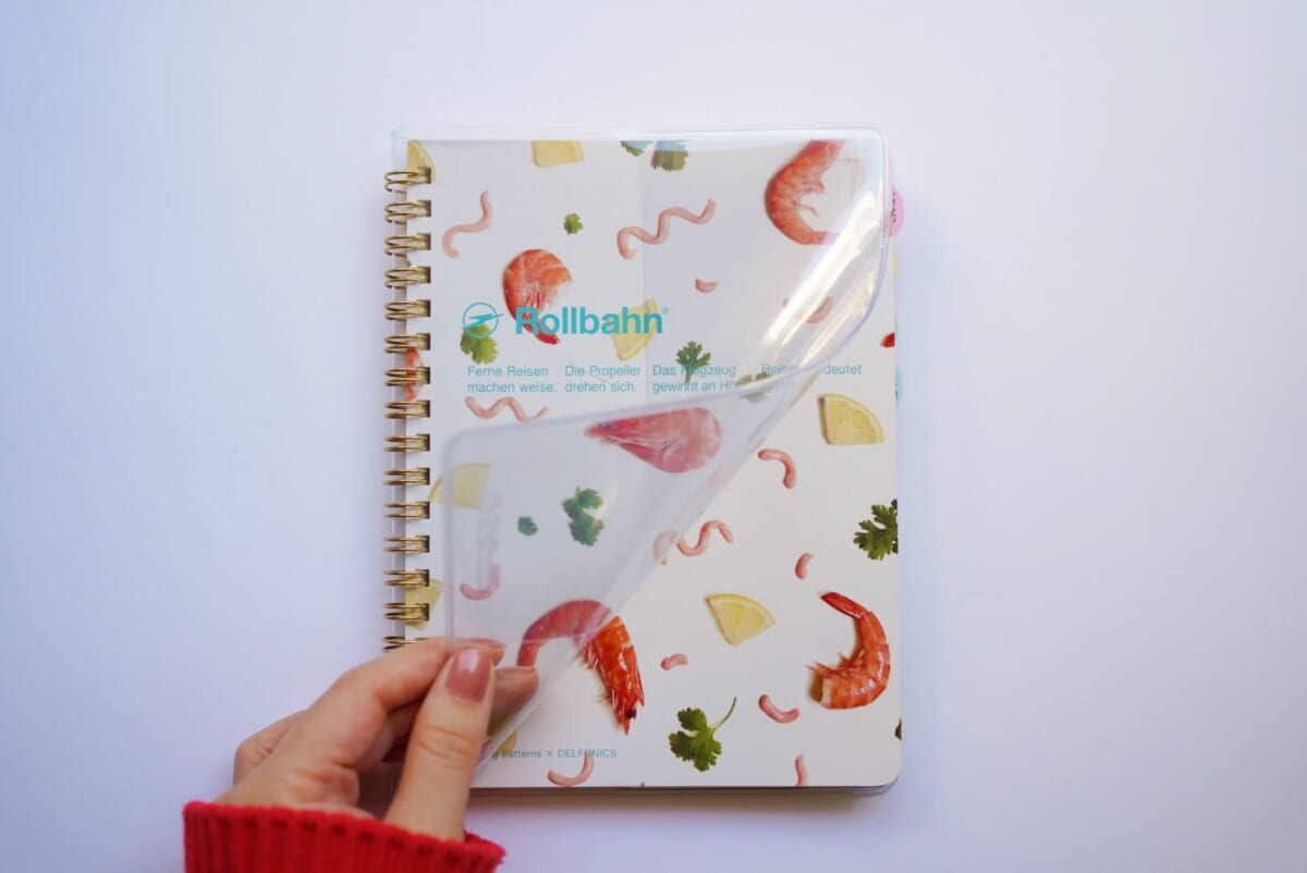 使いはじめてすぐ、私はふと、ロルバーン用のクリアカバー(「ロルバーンポケット付メモカバー」)の存在を思い出しました。ノートが汚れるのも嫌ですし、一応つけておこうと思い装着すると、これが実にすばらしい。ダメージを負いやすい角を守ってくれますし、もちろん表紙が汚れることも防げます。