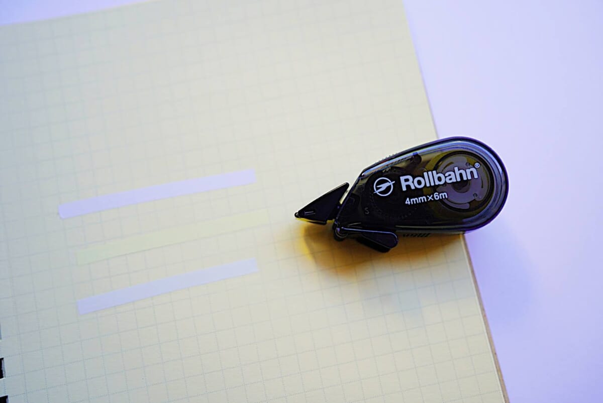 さらには、つい最近ですが、ロルバーン専用の修正テープも作られました。黄色がかかったロルバーンの紙には、真っ白なテープが目立ってしまっていたのですが、これで綺麗に修正できるようになったのです。