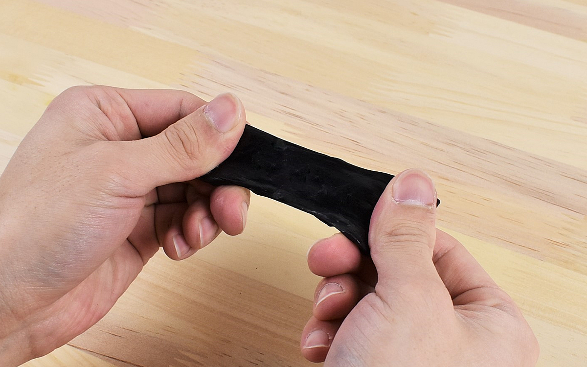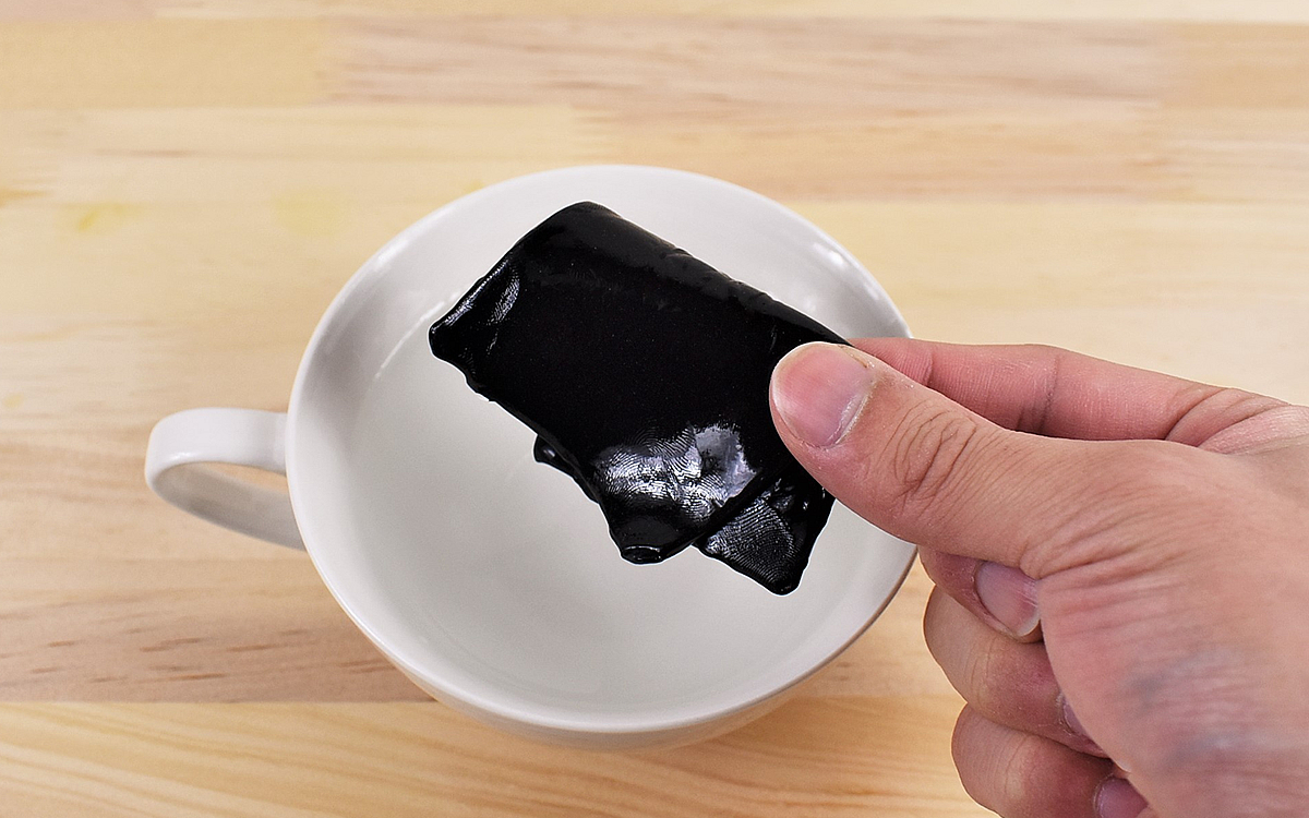 するとカードがどんどん柔らかくなり、粘土のような状態に。手で伸ばしたり丸めたり、好きな形に変えることが可能です。