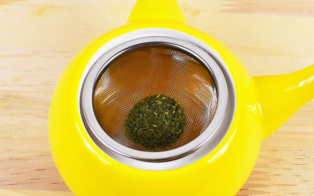 ステンレス製の網も付属しているため、茶葉を入れてお湯を注ぐだけでOK。さっそく茶葉と湯呑みを用意して、1杯入れてみます。