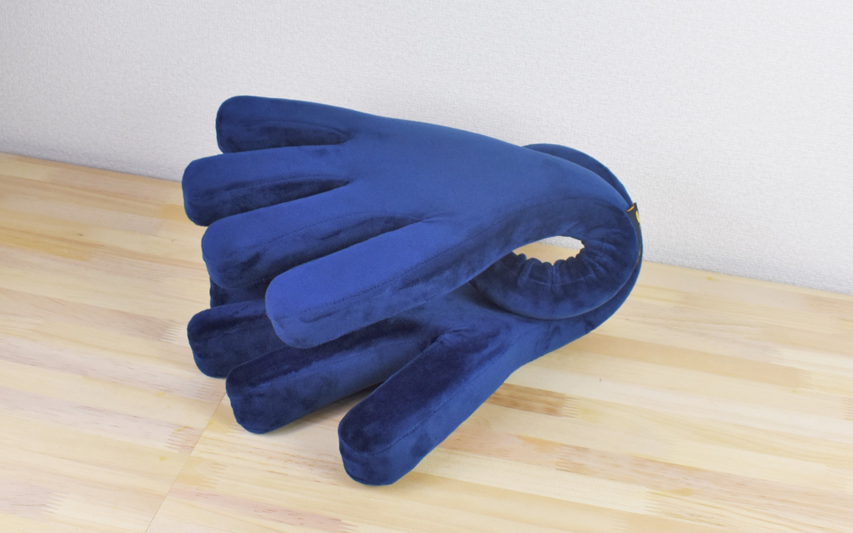 試しにアームクッションを折り曲げてみたところ、好きな形に固定することができました。指を曲げて飲み物を握らせればドリンクホルダーになるので、片手間で映画鑑賞も可能。他にも指をからませると目を隠すことができ、仮眠にちょうどいいアイマスクの代わりになります。これなら光をシャットダウンできるうえ、寝顔を見られる心配もありません。