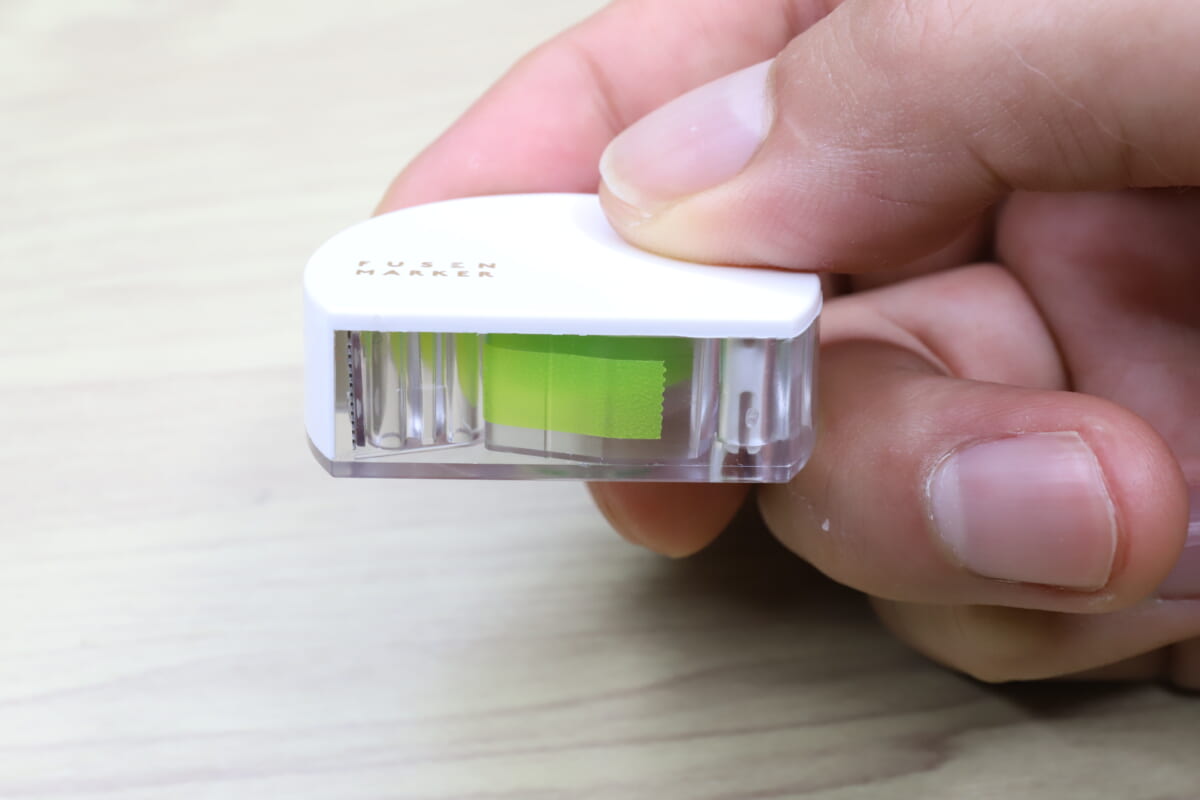 対して「フセンマーカー」は、コンパクトなボディにロール状の6mm幅フィルム付箋テープを内蔵しており、かなりコンパクト。日常的に使うのであれば、ペンケースに放り込んでおけるサイズ感はありがたい。