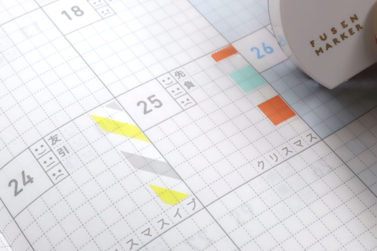 また、柄タイプは文字列を目立たせる用というよりは、手帳の飾り付けに使う感じだろうか。この場合は、マステよりも細幅で貼れるのがポイントと言えるだろう。