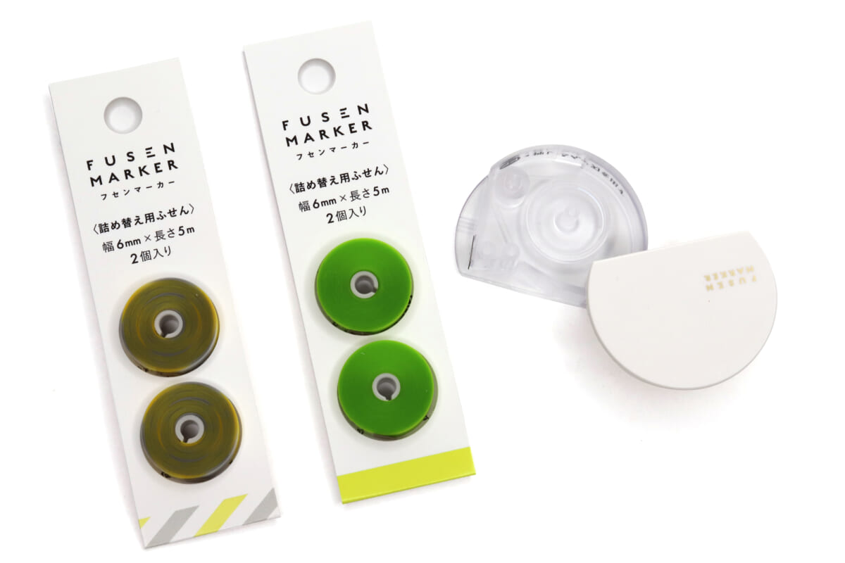 発売時点でのフィルムのラインナップは、ラインマーカー感覚のピンク・グリーン・グレーに、暗記用ブルー、そして柄物のスクエアとストライプの6種類。ケースは全て共通なので、リフィルロールの補充も、入れ替えて好きなフィルムを使うことも可能だ。慣れればケース開閉も簡単なので、入れ替えで戸惑うことはあまりないだろう。