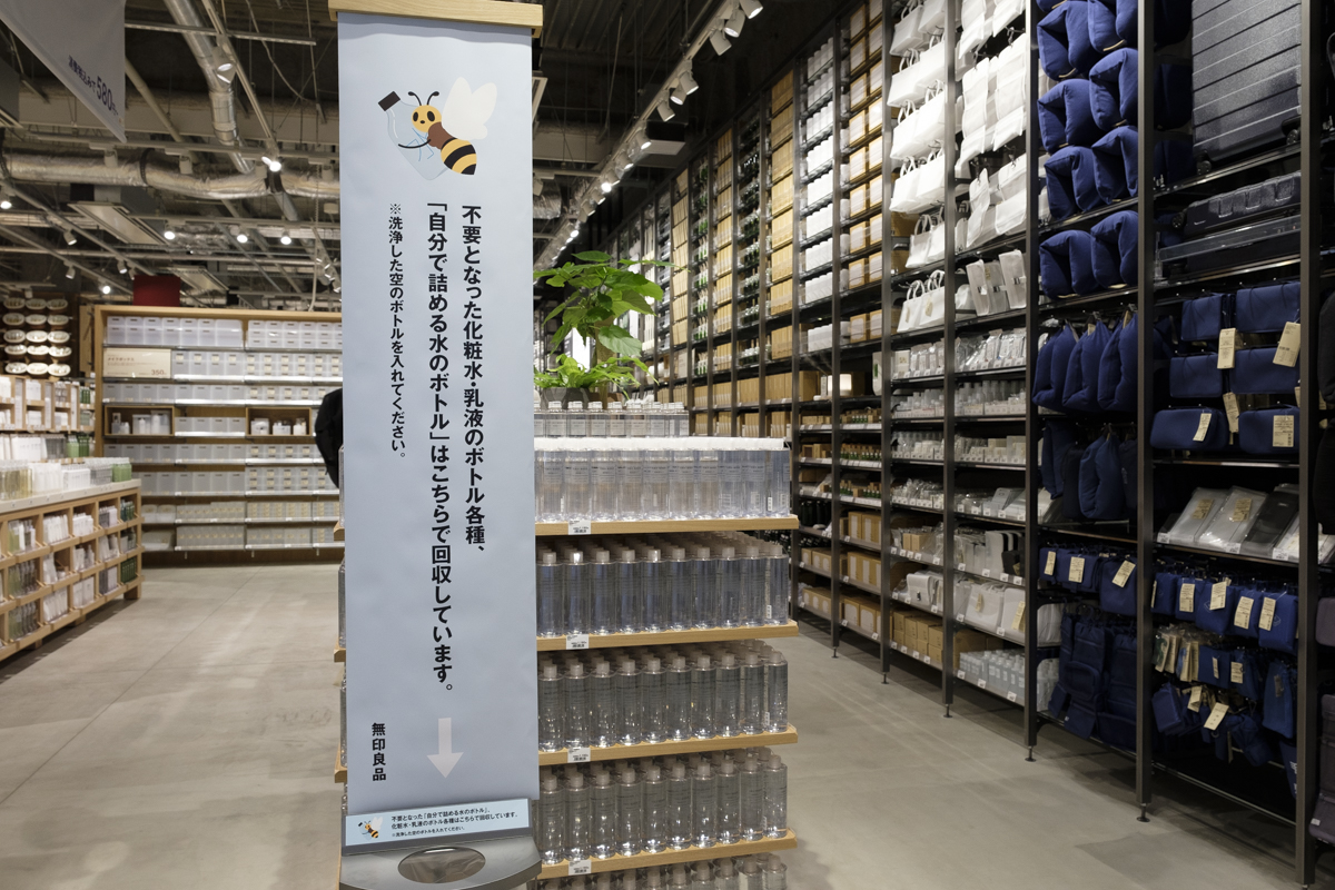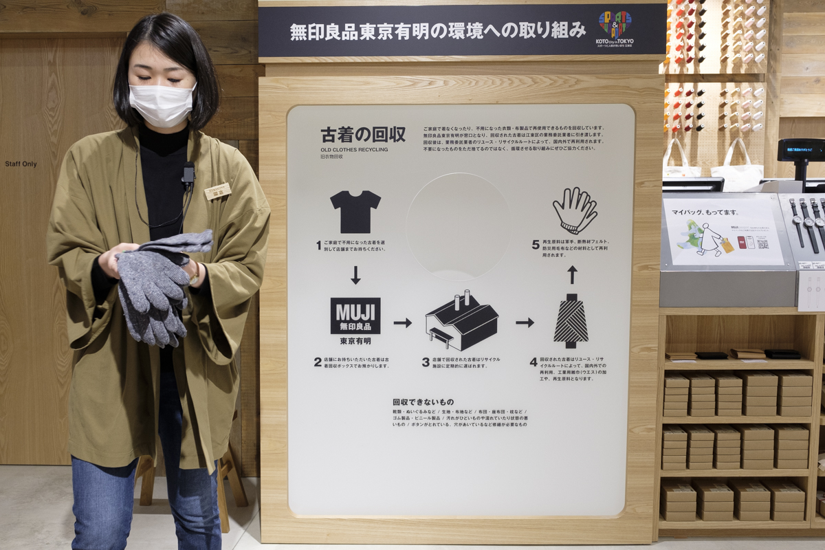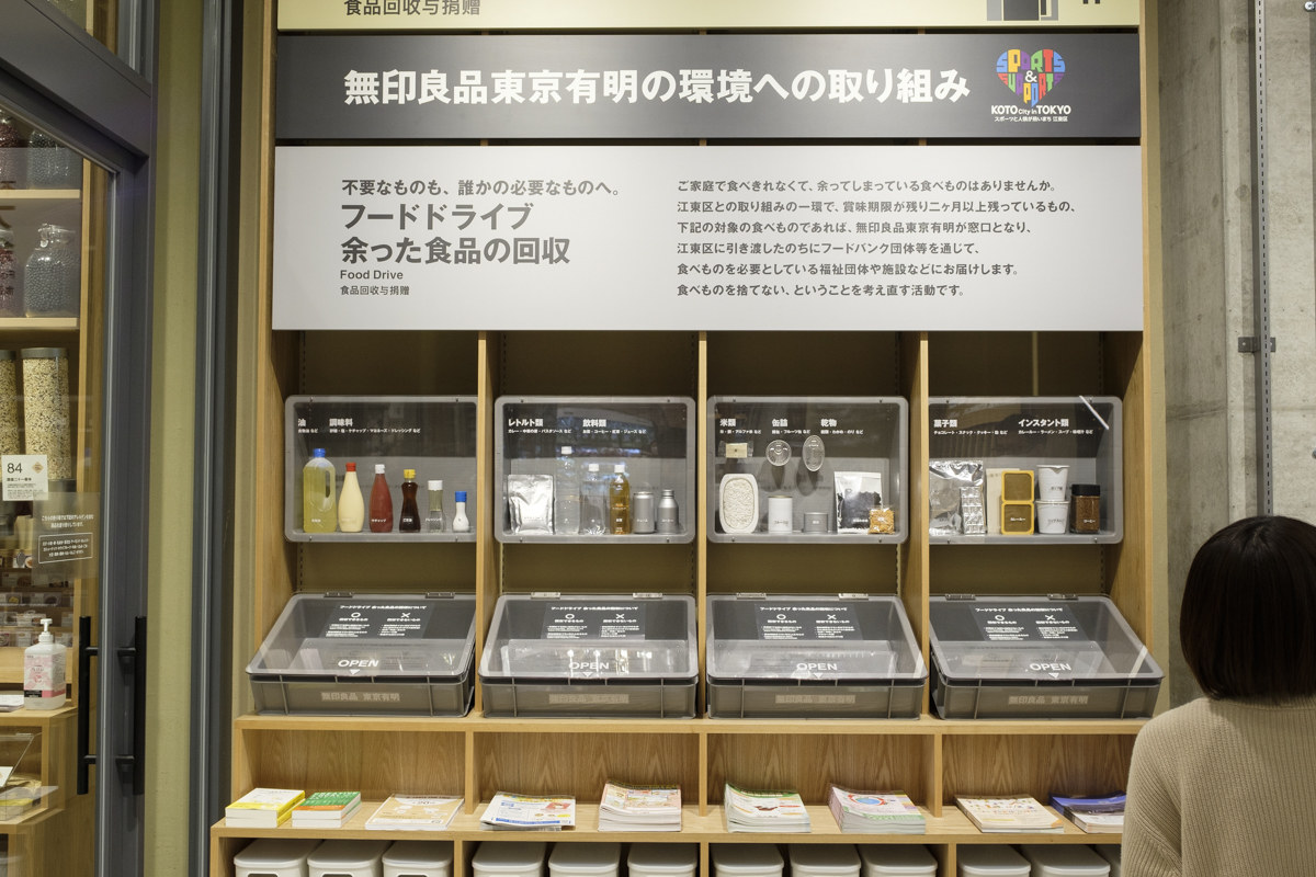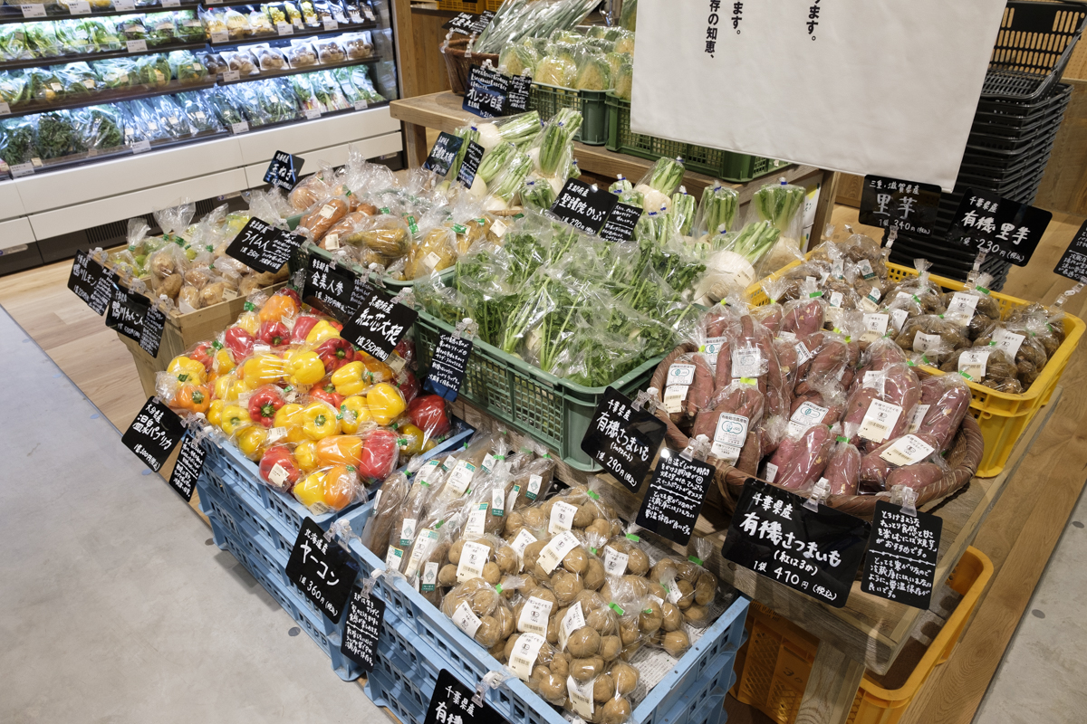 生産者と無印良品が直接つながり、新鮮な青果を販売。保存方法や最後まで食べきるコツを伝えるなど、地域と共生して生産者と食卓をつなげる試み。