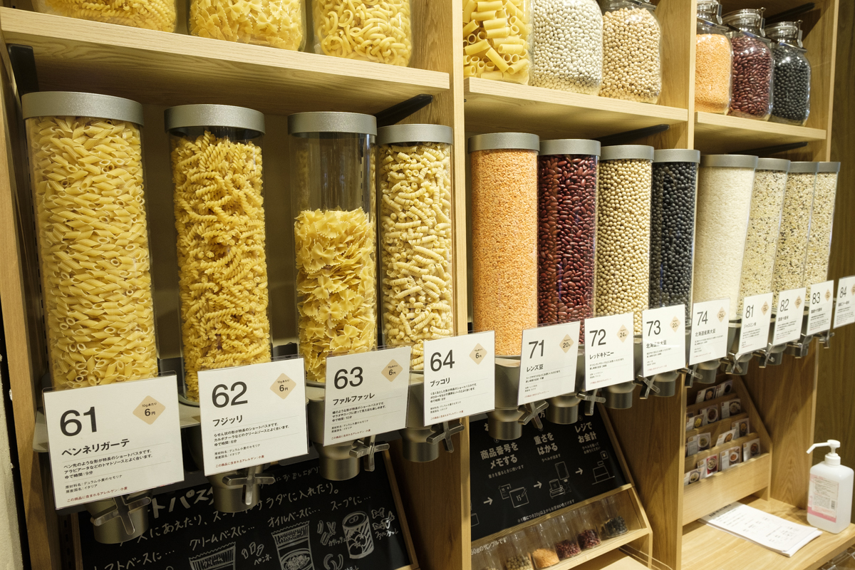 「食」に関する商品とサービスが大幅に強化されているのも無印良品 東京有明の特徴です。無印良品 東京有明では1階フロアに食に関する商品・サービスが集中しており、下記のようなコーナーがあります。