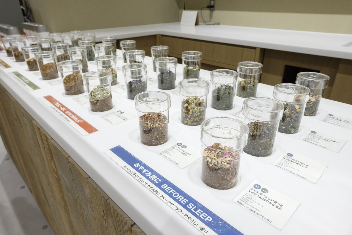 人や日によって変わってくる、食べる量や使う量。これに応じて、食品の量り売りを行っています。食の基本となる雑穀や乾物は20グラム以上、1グラム単位で1個ずつ、1人分ずつの最小単位で販売。気分やシーンに応じて32種類から選べるブレンドティーは30グラム以上、10グラム単位で販売しています。