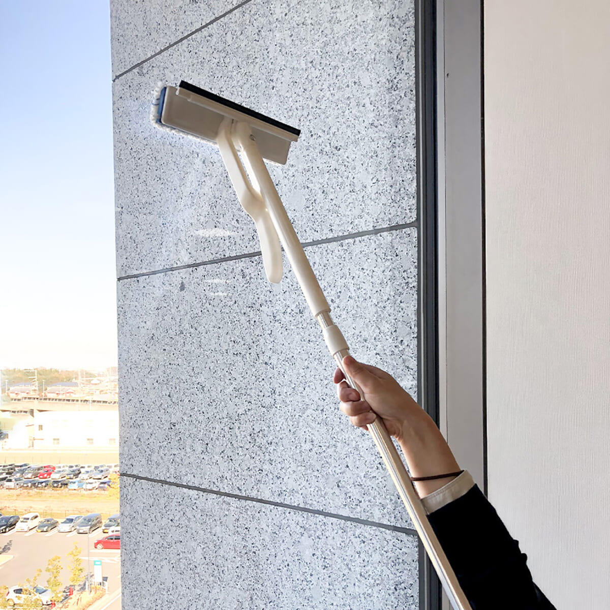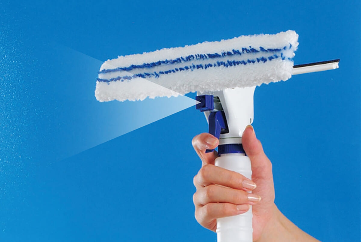 立野 通常のワイパーは、水やガラスクリーナーをシュッシュッとかけた後、ワイパーで掃除していくわけですが、水を補給するためのホースやバケツが必要になります。しかし、この商品はスプレー付きのガラスワイパーなので、ホースやバケツを使用する必要がなく、手軽に窓ガラス掃除ができます。このワイパーにもモップ部分にはマイクロファイバーを採用しています。前述の通り、洗剤がなくても汚れを落としやすい点もおすすめです。