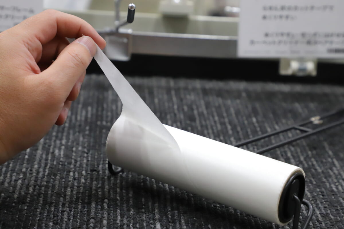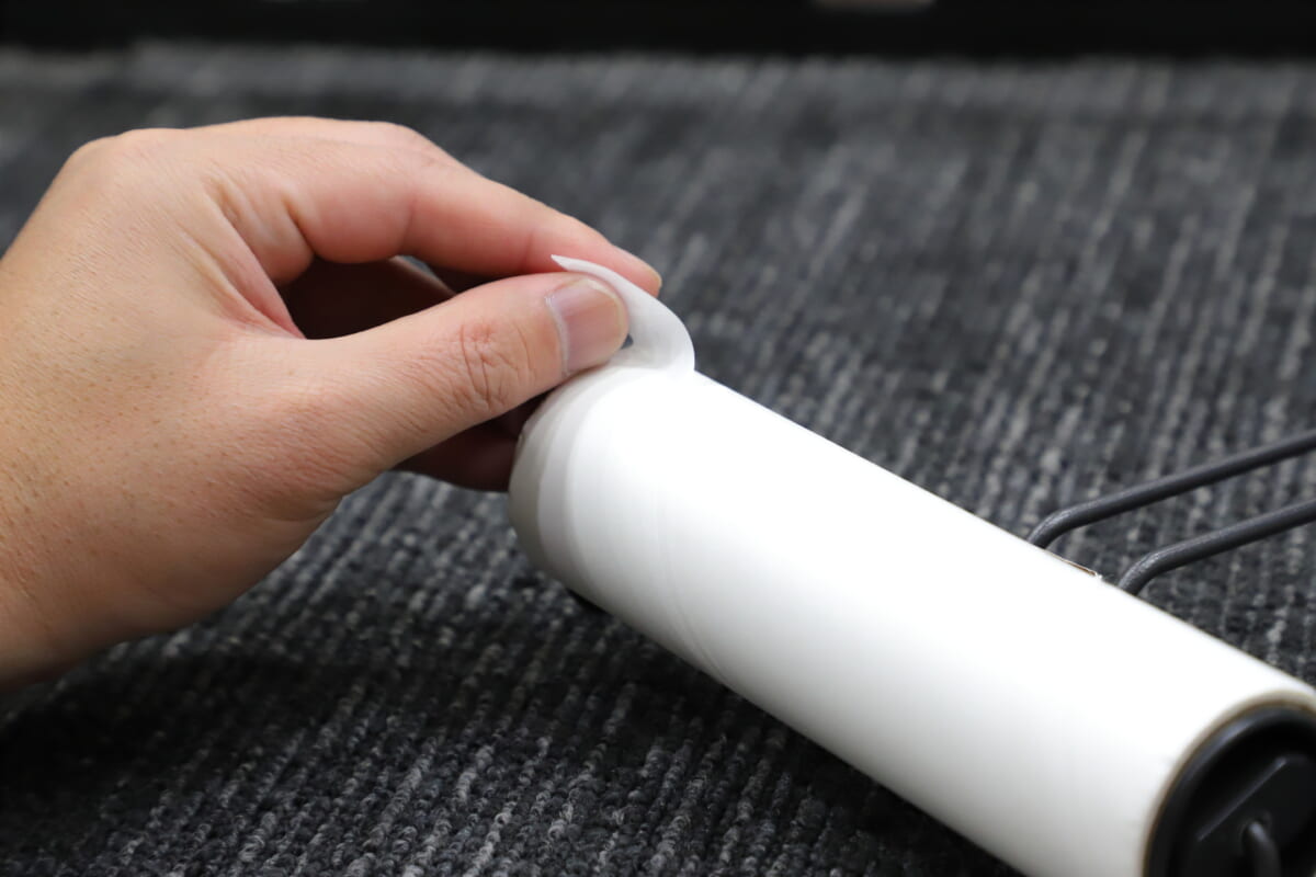 また、市販コロコロの難点の一つが、掃除をして粘着力が弱まった後、テープをめくる際その継ぎ目がわかりにくいところ。本商品ではこれをよりわかりやすくするために、スパイラル状にテープを巻いているのも特徴です。