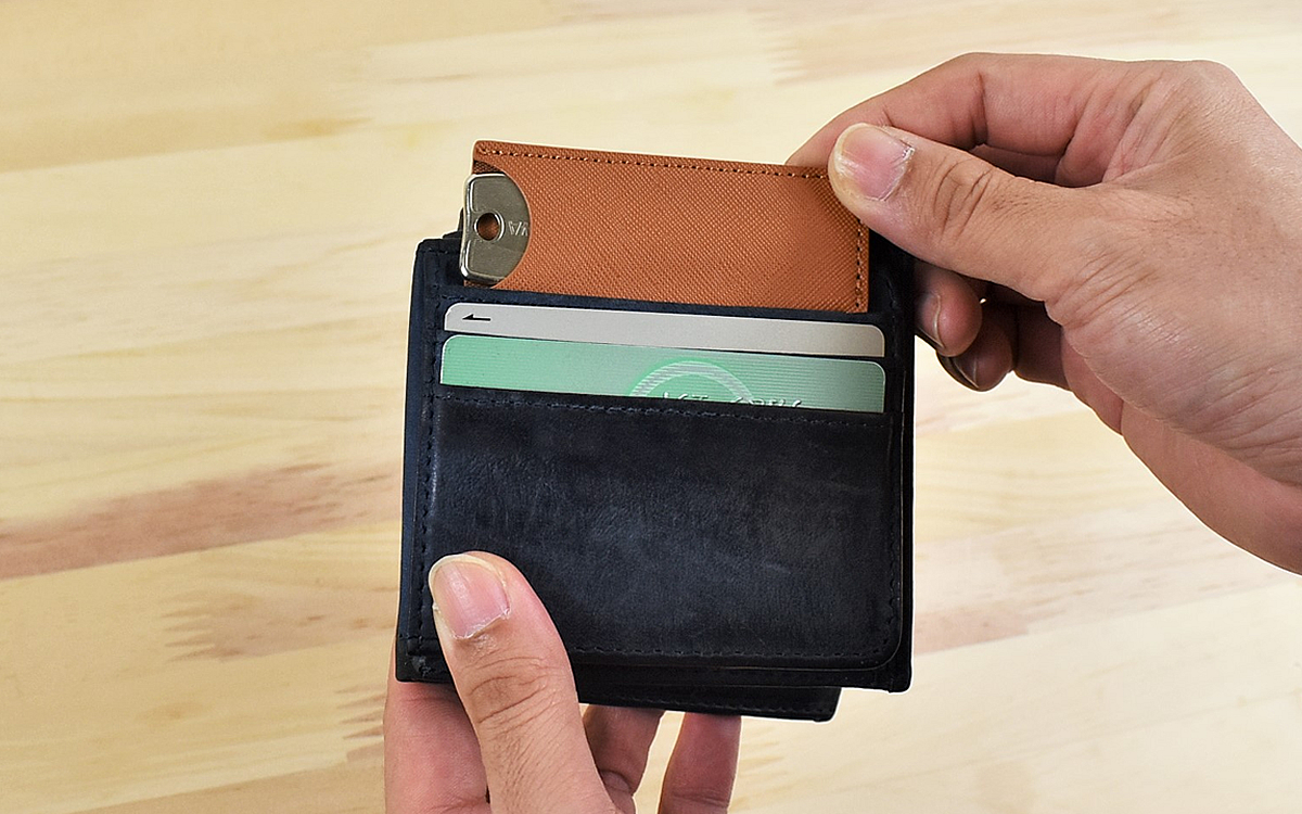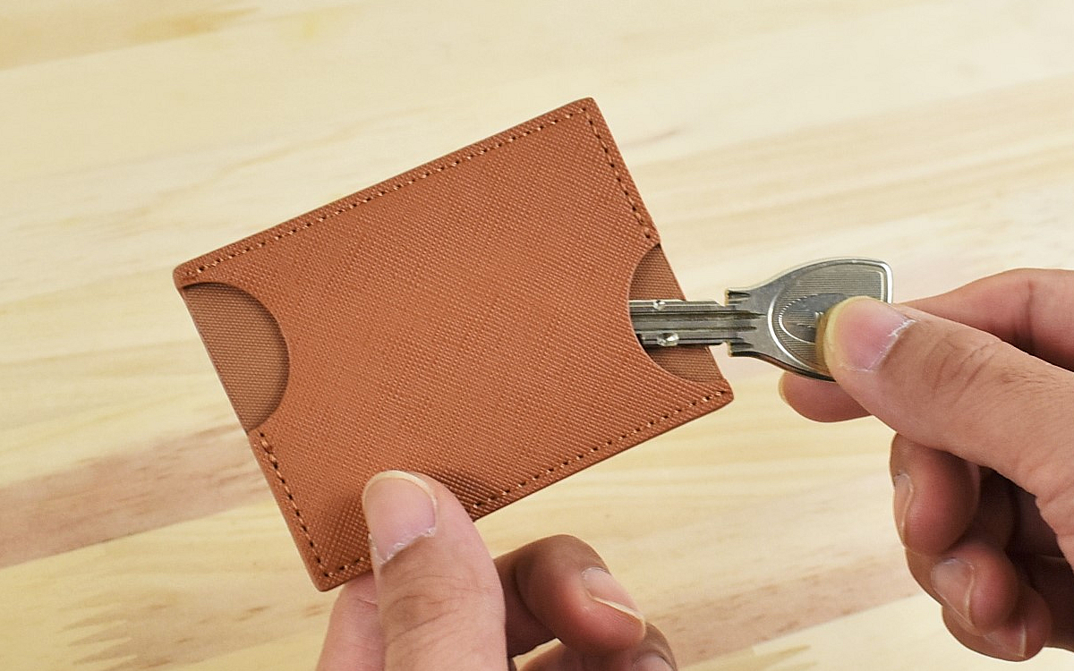 「カード型のキーケース」と銘打たれた同商品は、2か所からカギを差し入れることが可能。2つのカギを収納できるので、予備のカギを保管する際にも便利ですよ。ちなみに使用可能なカギのサイズは、約63(縦)×25(横)×3mm(薄さ)まで。