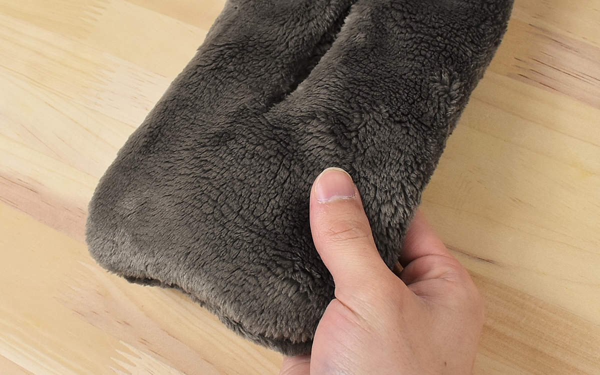 ポリエステル100%のマイクロファイバー毛布を使用した同商品。毛足は短くてツヤがあり、高級感のある質感を楽しめます。