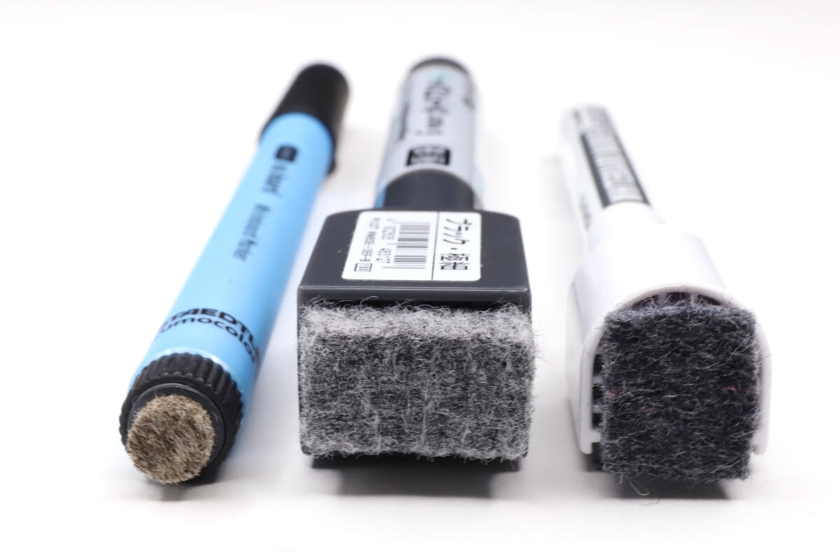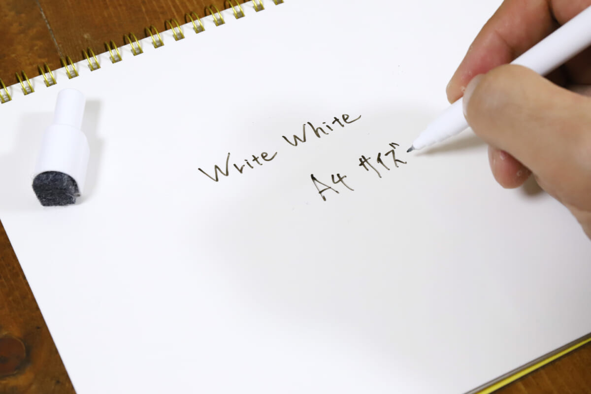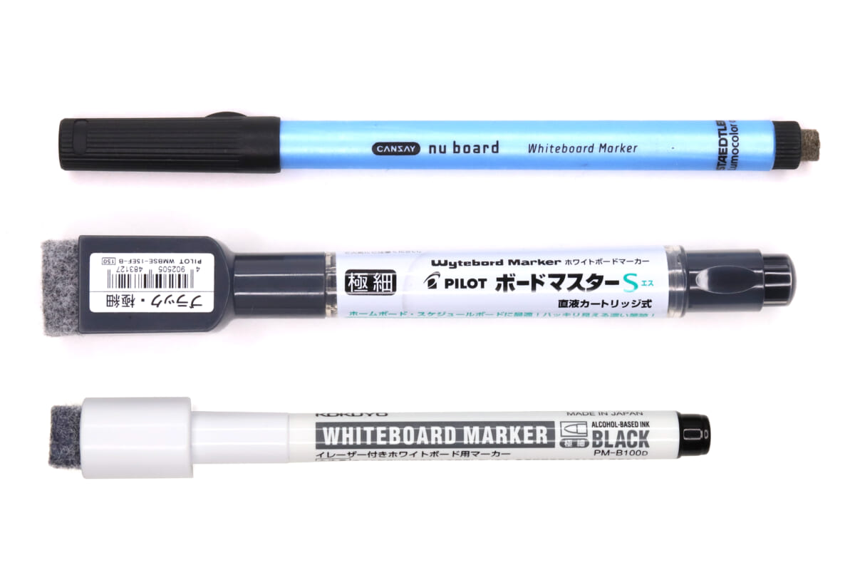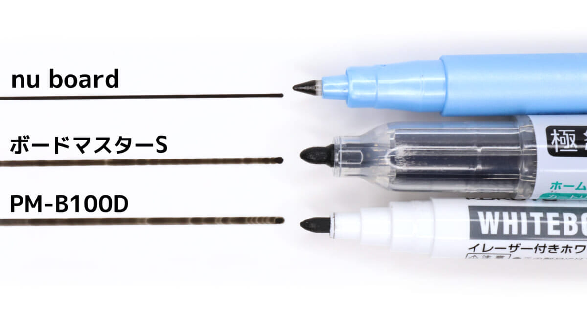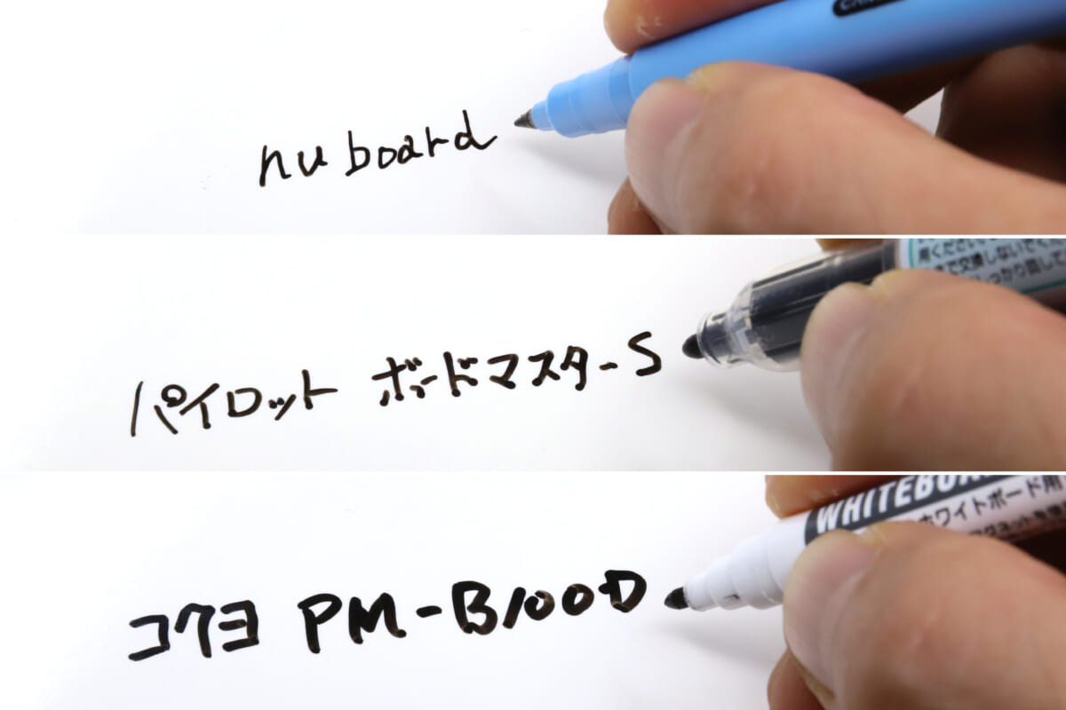 これ、探してもコクヨ製品としては販売されていないようなので、おそらく「Write White」用に別注されたカスタム品だろう。書いてみると、線の細さは「nu boardホワイトボードマーカー」に近いもの(表示スペックは0.8mm)で安定した書き味があり、かつインクはコクヨ製なので消しやすくクズも少ない。