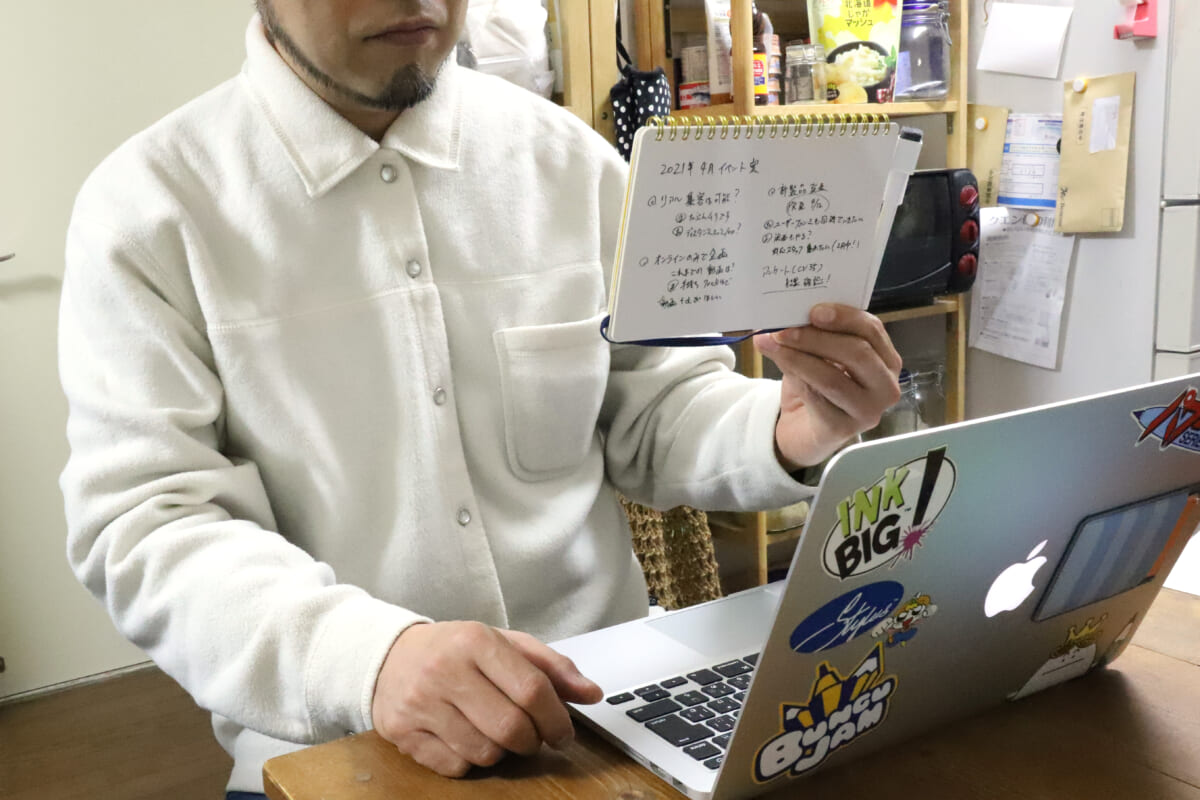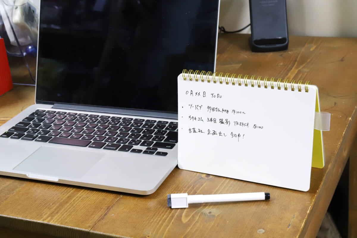 サイズがB5とB6の2種類がラインアップされているが、意外にもこれまでなかったのがB6サイズ。さすがに「書き消しが手軽なアイデアまとめノート」という用途には小さ過ぎるのだが、実はこれ、目の前にあるウェブカメラに向けて写すのに、ちょうどいい感じのサイズなのである。