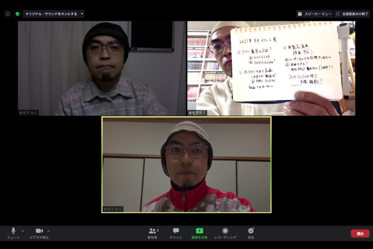 カメラからわざわざ身体を引くといった気も遣わず、ホイと見せればそれでボード面全体がフレームに収まって、自分の顔が写る隙間もちょっと残るくらい。これがオンライン会議にはとても使いやすいのだ。