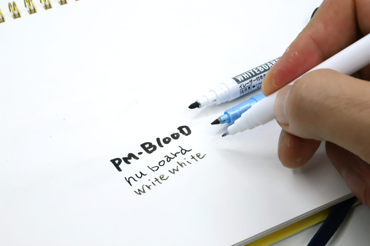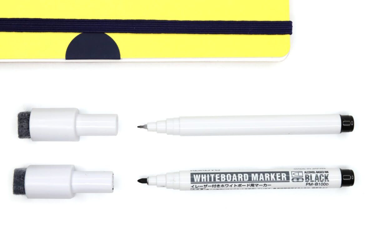 もうひとつ見逃せないのが、付属のマーカーである。見た目からは、さきほど紹介したコクヨ「PM-B100D」のマグネット抜きバージョンかな? と思ったものの、キャップを開けてびっくり。ペン先チップが、より細いものになっているのだ。