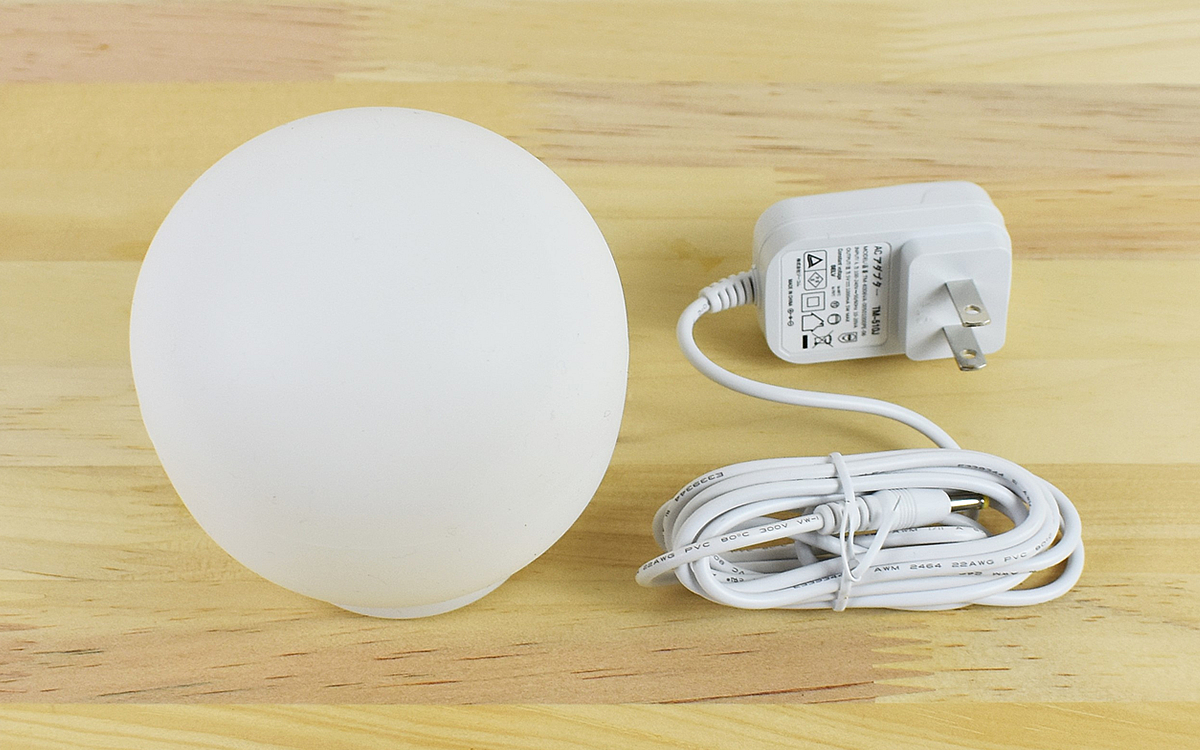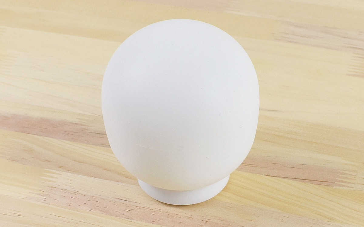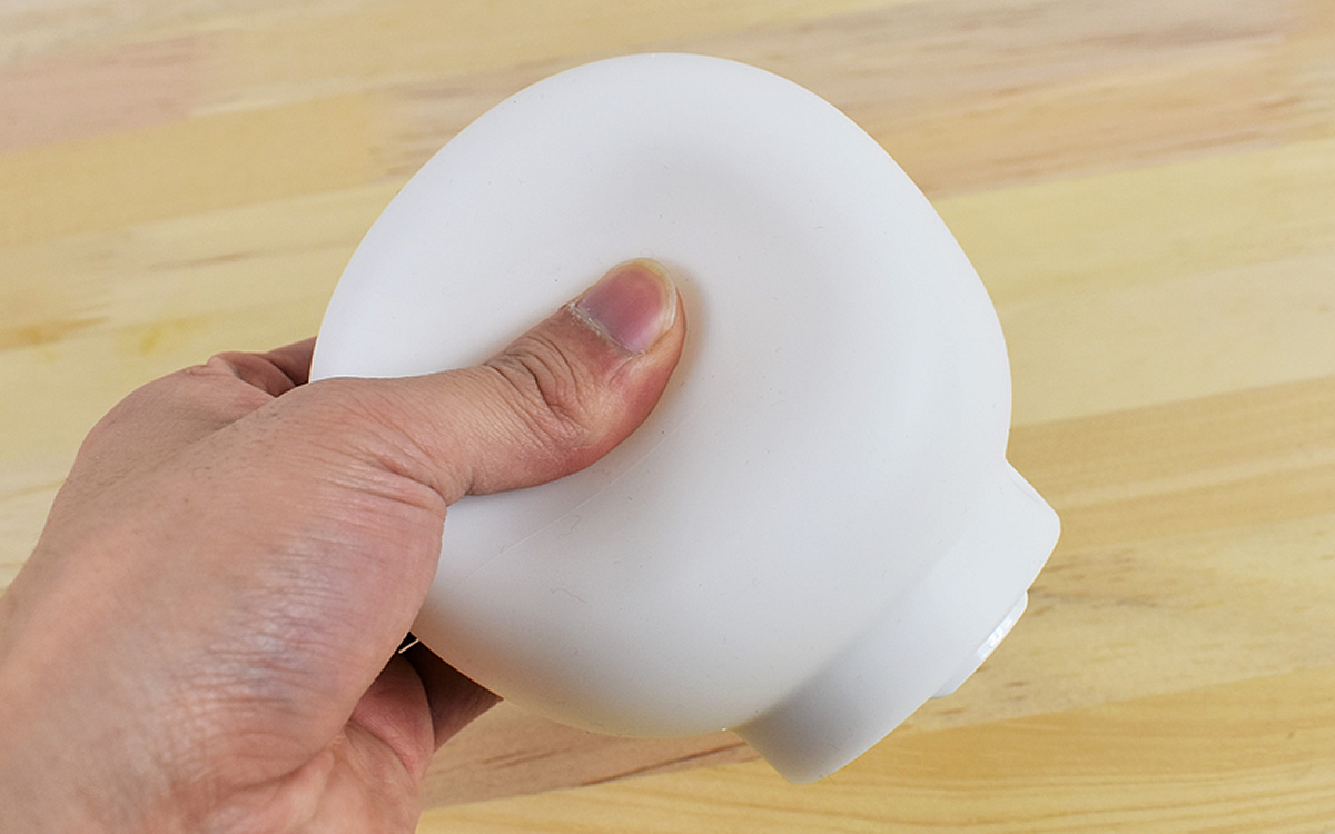 同商品は、9.5(直径)×11.2cm(高さ)ほどのコンパクトなライト。付属のACアダプターをコンセントに差すだけで使用できます。本体の丸い部分はシリコーン素材で作られており、ぷにぷにとした質感。重さも約138gと軽量なので、うっかり落としても安全です。