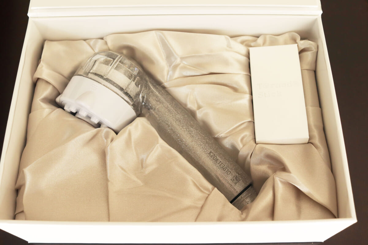 スティックに搭載された亜硫酸カルシウムフィルターにより、水道水中の残留塩素を低減。さらに特殊な空気混合方式を採用することで、水の使用量も削減し、肌にもお財布にも優しいものになっています。