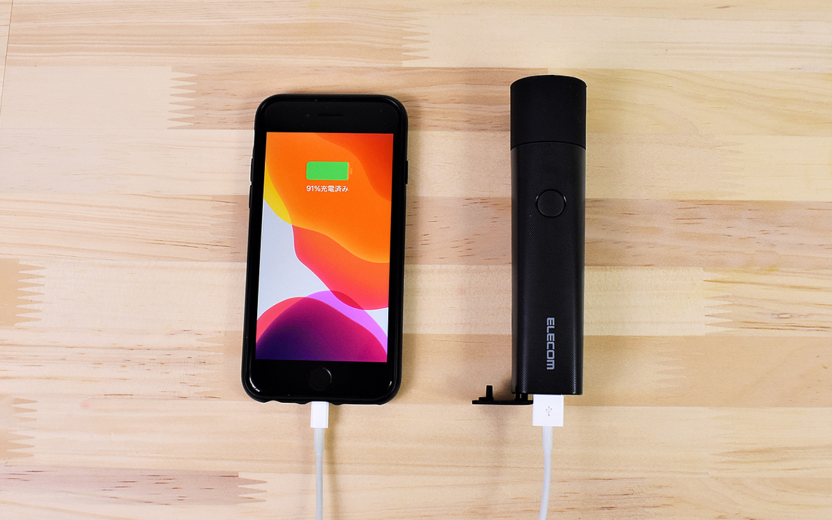 ●バッテリー×ランタンの多機能アイテム「3350mAh 防災LED付 モバイルバッテリ 懐中電灯型」(エレコム)