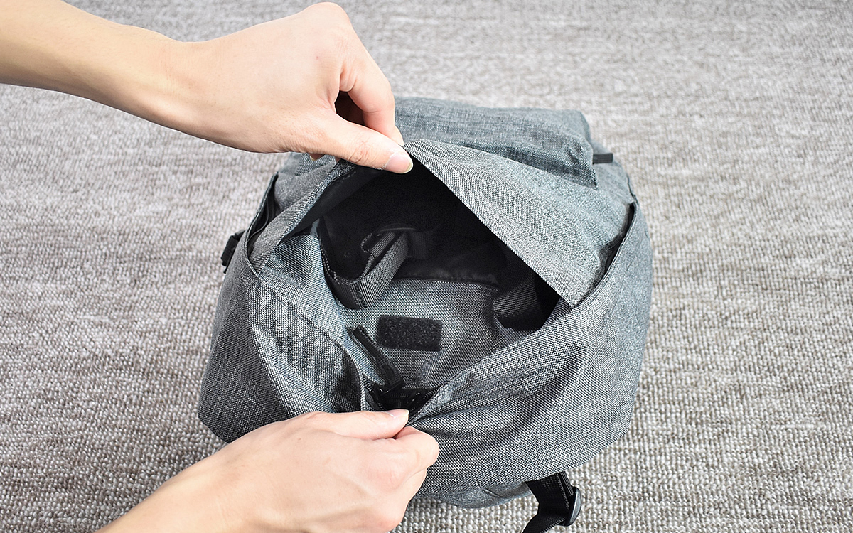 肩紐も手提げベルトも、使わない時はポケットに隠すことが可能。余ったベルトをどこかに引っかけてしまう心配もありません。