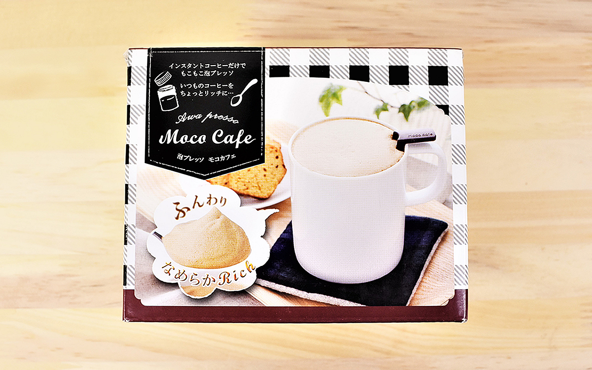 コーヒーはブラックで飲むことが多い私ですが、実はミルクたっぷりの甘いカフェラテも大好き。最近は写真映えするラテを出すカフェも増えてきて女性からも人気がありますよね。特に私が好きなのは、ふわふわに泡立てたラテ。可愛い見た目とまろやかな味で癒やしのひとときを楽しめます。この味を自宅で再現できないかと調べてみたところ、「泡プレッソ モコカフェ」(メーカー希望小売価格:1800円/税別)という商品を発見。粉末のインスタントコーヒーだけで作れるという気軽さに惹かれて購入してきました。
