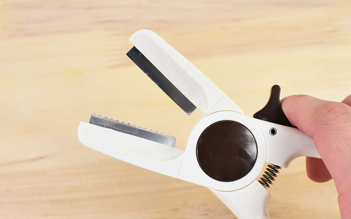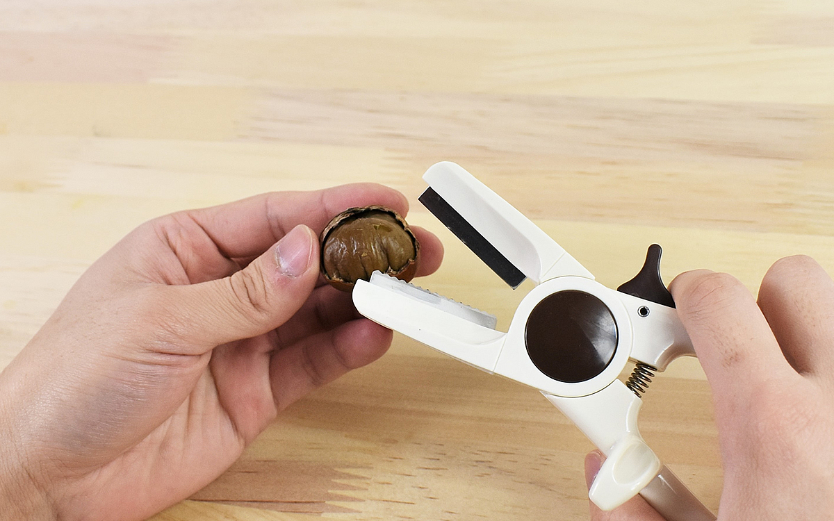 片方の刃がギザギザになっているハサミタイプの同商品。栗には表面を覆うかたい鬼皮と薄い渋皮があるため、しっかり挟めるフォルムはまさにうってつけですね。