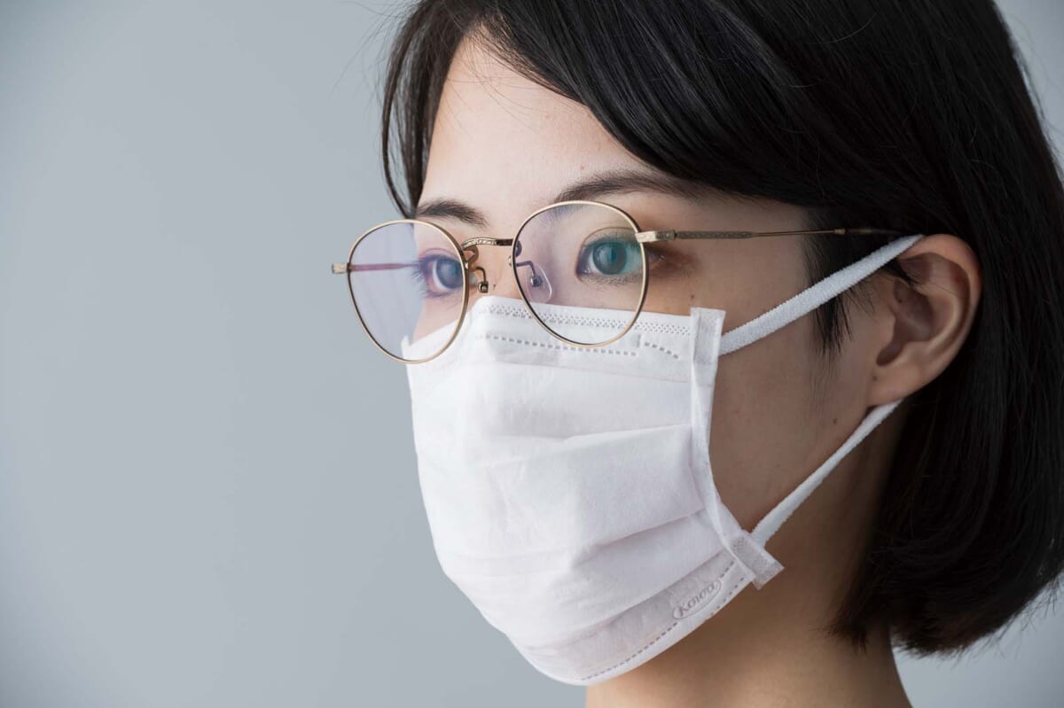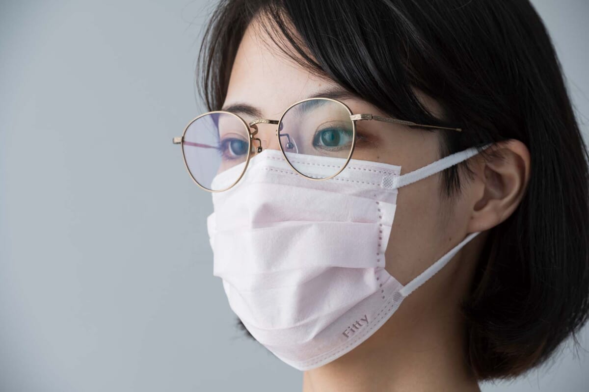 普段から使い切り不織布マスク派。仕事中はブルーライトカットメガネをかけることが多いため、くもり防止機能も重視。