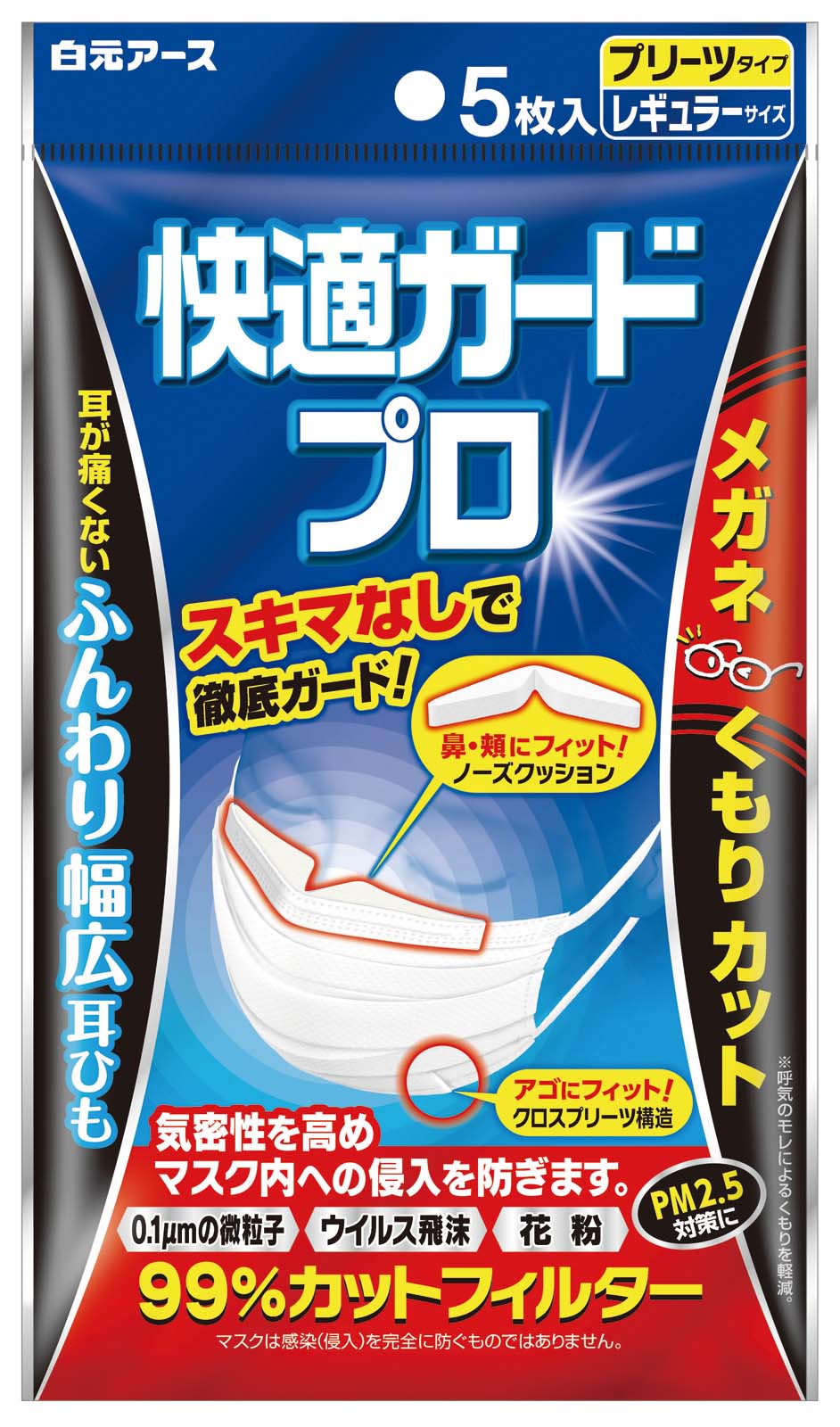 花粉に含まれるタンパク質や、不衛生タンパク質を吸着分解するハイドロ銀チタンシートと、細菌・ウイルスにも対応する防御フィルターを搭載。ニオイの元となるタンパク質も分解するため、1枚で数日間使用できる。くもり止め付きタイプは中央部分に設置された立体キーパーによって、口元に空間を作り出す。