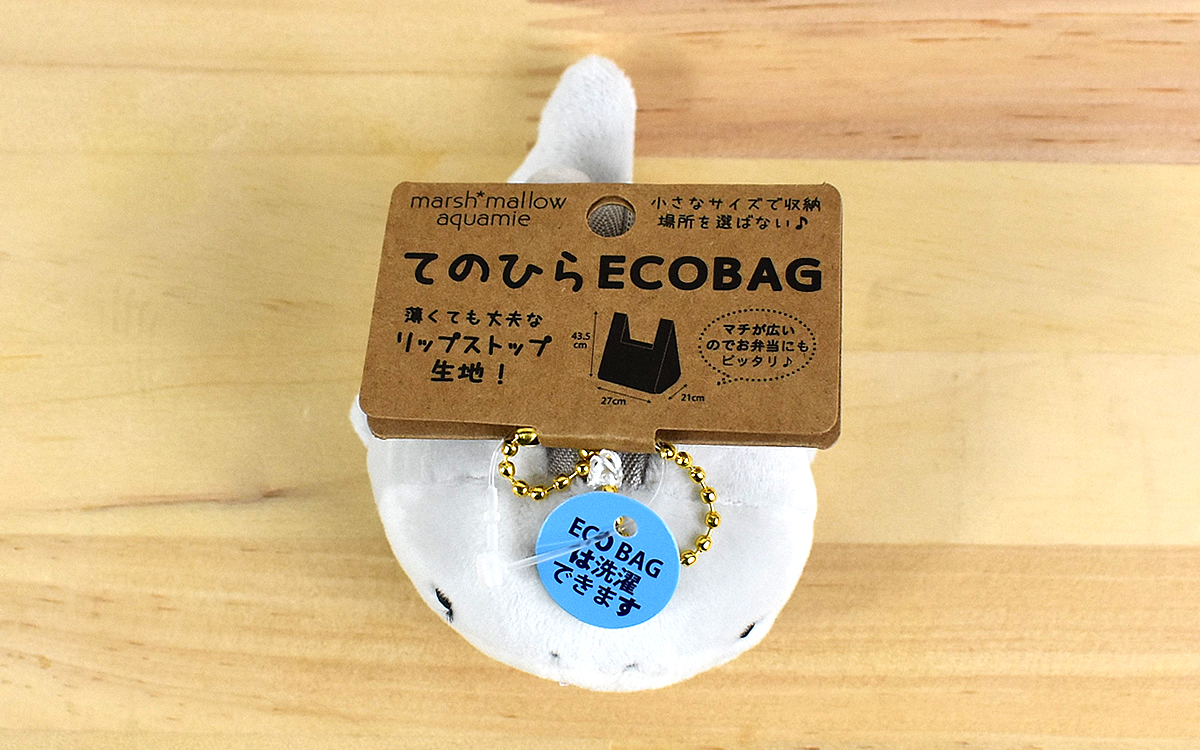 コンビニで買い物をすることが多い私は、マチが広くてお弁当を入れやすいデザインのエコバッグがお気に入り。よく使うバッグは手のひらサイズに折りたたんで持ち運ぶことができるのですが、小さすぎてどこに仕舞ったか忘れてしまうこともあります。持ち運びに便利で無くしにくいエコバッグはないかと探してみたところ、ロフトで「手のひらエコバッグ」(1800円/税抜)を発見。見た目の可愛さに惹かれて購入してきました。