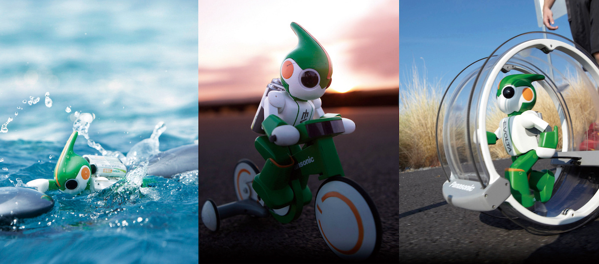 2010年には、東京~京都間約500kmを走破する「充電式エボルタ 東海道五十三次」。61日間かけてのゴールでした。2011年は3種類のエボルタロボットが総距離約230kmのスイム・バイク・ランに挑む「充電式エボルタ トライアスロン」。こちらは昼夜ぶっ通し166時間56分で完走。