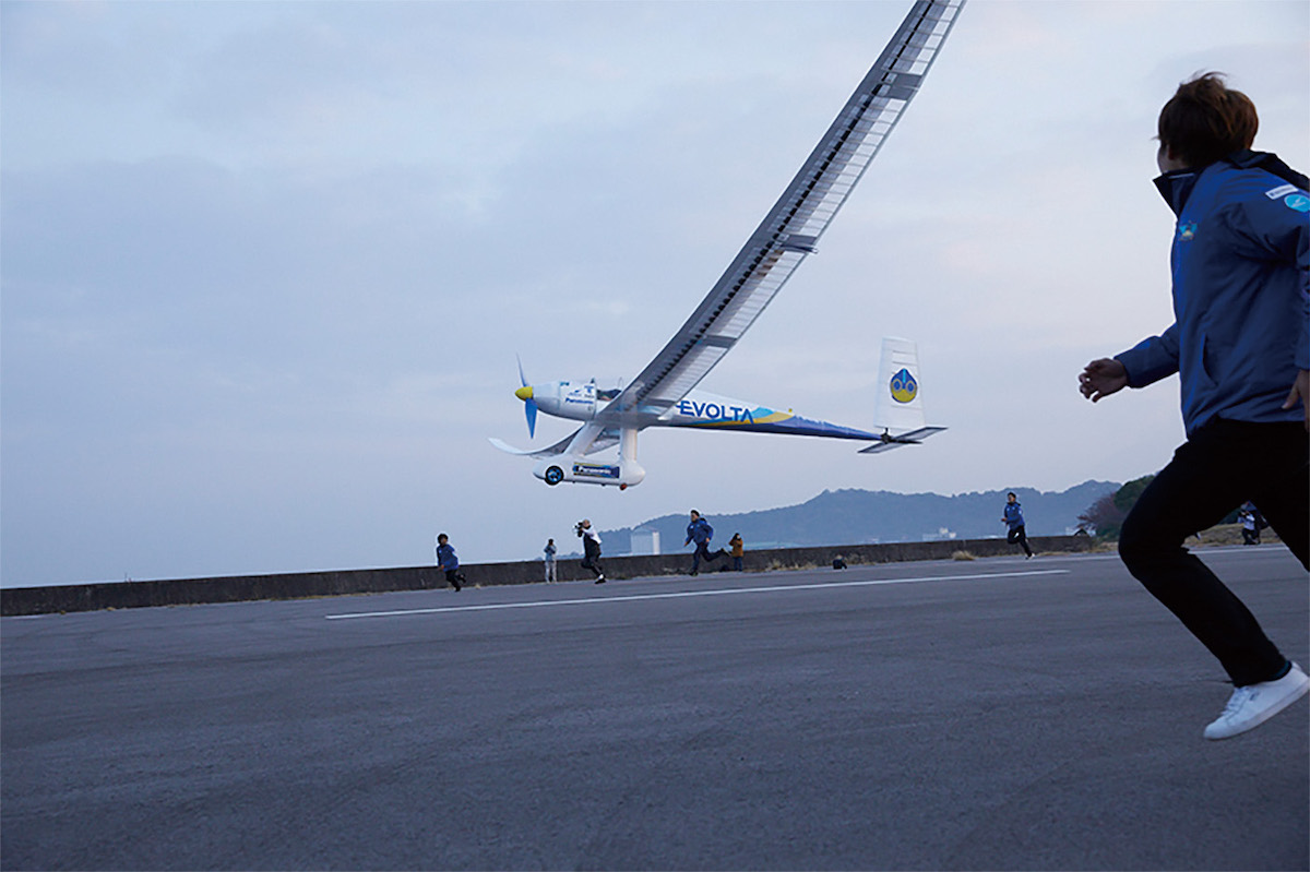そしてついに2016年、チャレンジは空へと羽ばたきます。「世界最長距離 有人飛行チャレンジ」。琵琶湖で東海大学人力飛行機チーム「TUMPA」製作の機体が乾電池エボルタのパワーだけで離陸し、3531mを飛び着水。残念ながら世界記録の達成はなりませんでしたが、動画サイトでの中継も盛り上がり、多くの人の記憶に残る飛行となりました。