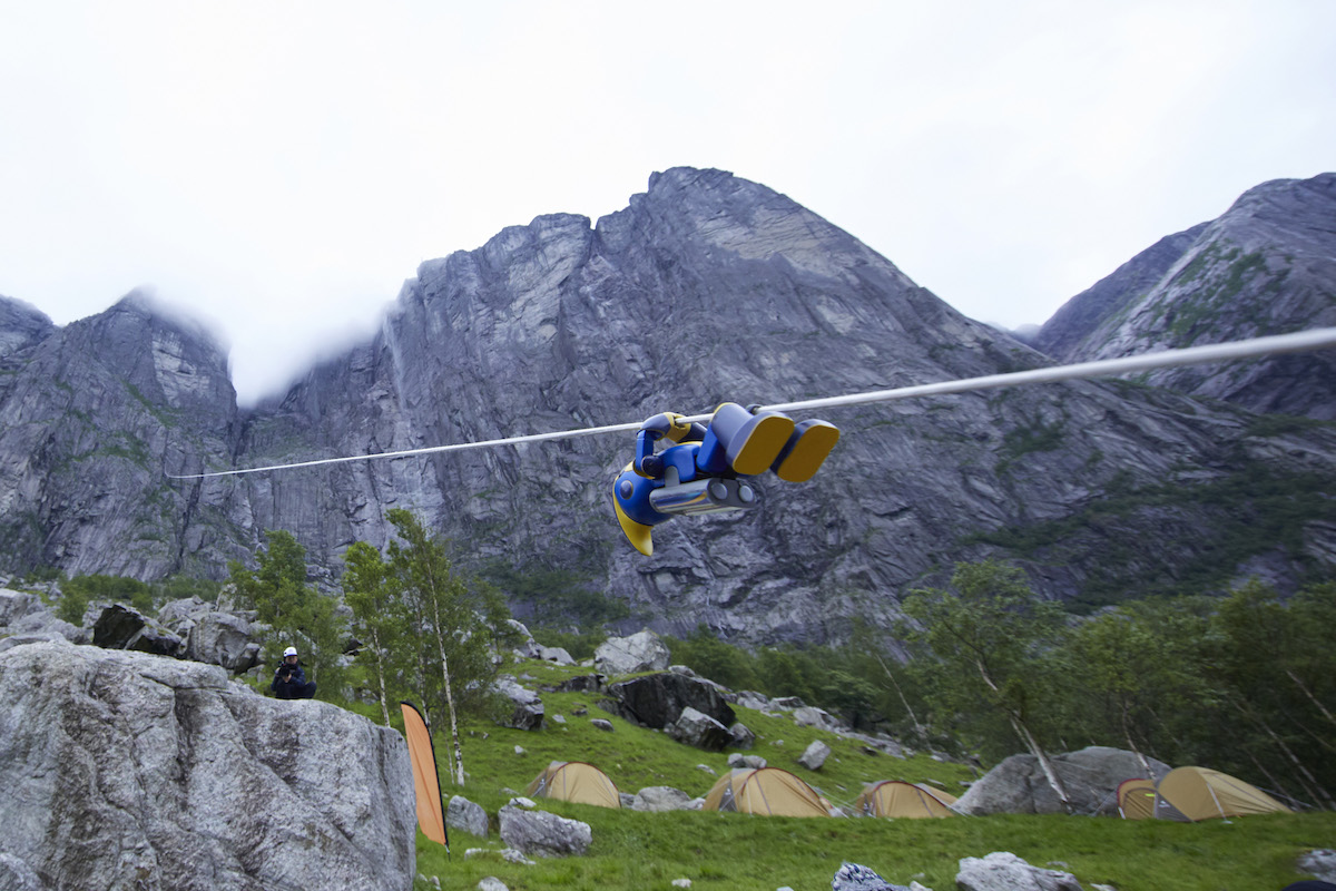 「エボルタNEOフィヨルド1,000m登頂チャレンジ」は、エボルタNEO単3形2本を動力源に長もち実証ロボット「エボルタNEOくん」が、ノルウェーのフィヨルドのロープ登頂にチャレンジ。