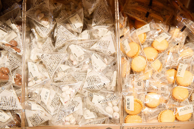 同コーナーではクッキーやおかきなどお菓子の量り売りも。おつまみやおやつなど、自分で好きなものを選んで好きなだけ買えるのはワクワクしますね。