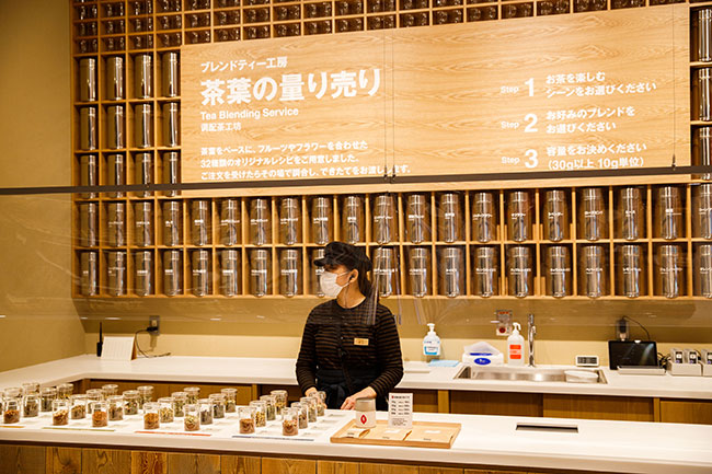 1階の食品フロアでは、食に関するあらゆるサービスが受けられます。注目すべきは、東京有明店が他店に先駆けて行う「食品量り売り」コーナー。必要なものを必要なぶんだけ買い、フードロスを防ぐという目的で誕生した新しい試みです。コーヒーや雑穀、ナッツ、ドライフルーツなど50種類以上の食品を、20g以上から1g単位で購入できます。コーナー内には、各食品の特徴やおすすめの食べ方を書いたブラックボードが設置されており、おいしく食べるためのヒントをもらえます。