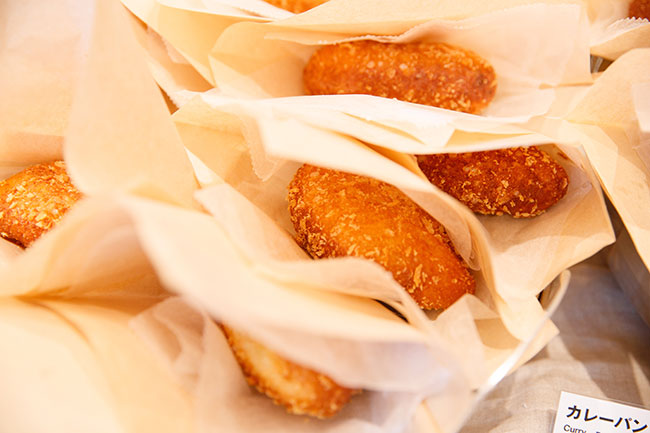 注目はなんといっても、ここでしか味わえない「カレーパン」(240円)。10種のスパイスのキーマカレーをターメリックを練り込んだモチモチ生地で包んだ揚げカレーパンは、東京有明店の名物になること間違いなしです。