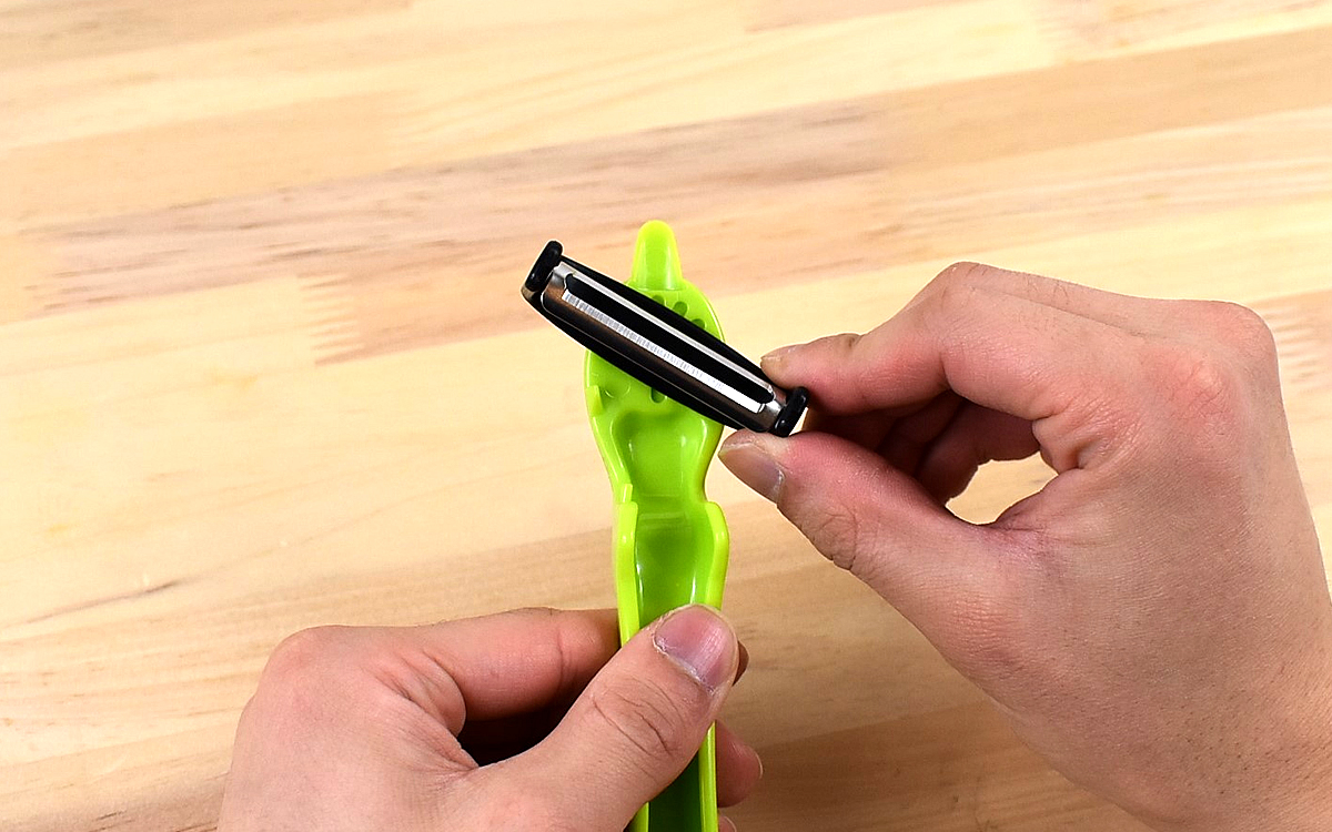 刃は斜めにセットすることもできるため、自分が1番やりやすい方法を探すことが可能。皮むきだけでなく薄切りや千切りなどにも役立ちますよ。ジャガイモの皮をむくときは、持ち手の先端についている突起を使って芽を取り除きましょう。
