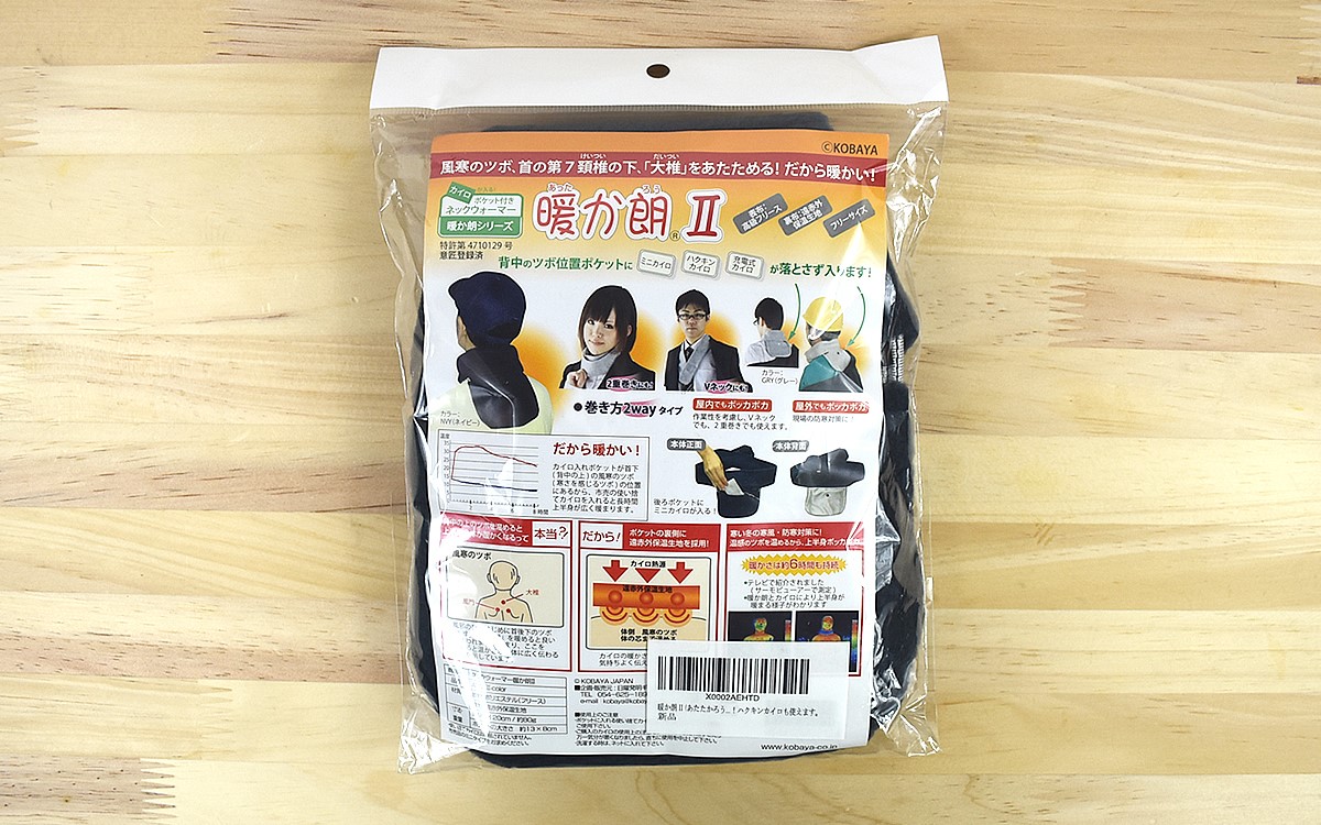 最近は近くのコンビニへ買い物に出かけようと思っても、マフラーや手袋でしっかり防寒しないと外に出られない私。特に風が強い日は、なるべく素肌を出さないように着込まないと驚くほど体が冷えてしまいます。たまに貼るタイプのカイロを使うこともあるのですが、貼りっぱなしだと暖かい室内で熱く感じてしまうことも。そこでカイロの暖かさをもっと効率よく利用するために、「暖か朗Ⅱ」(2470円/税込)を購入しました。