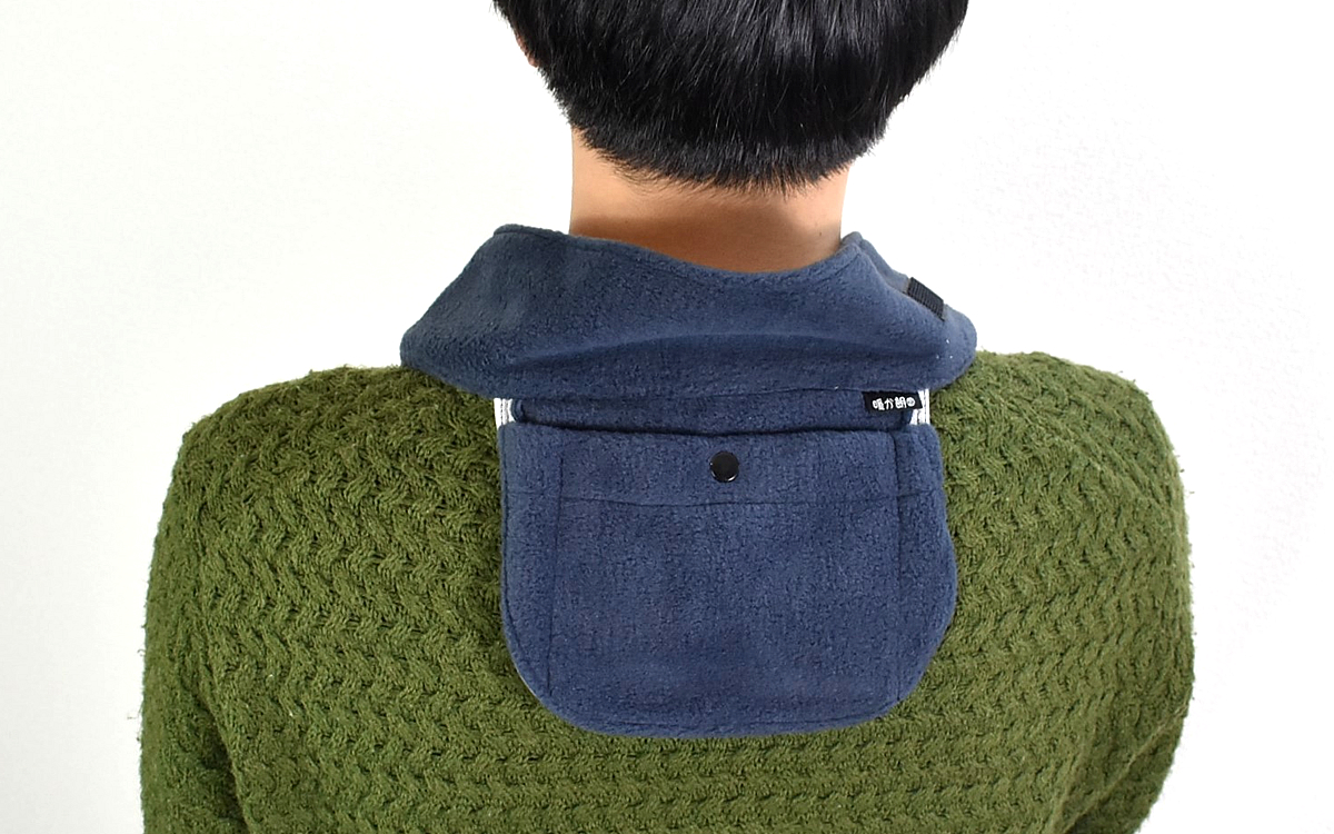 ポケットの裏地には遠赤外線放射性生地が使用されていて、カイロとの相乗効果で暖かさがアップする仕組み。服の上からでも十分熱を感じ、カイロが当たっていない部分までポカポカしてきました。ちなみに首の裏側から下の部分には「大椎」「風門」といったツボがあり、ここを暖めるだけで体に広く熱が伝わるという効果も。熱くなってきたらマジックテープを緩めれば、気軽に温度調節が可能ですよ。