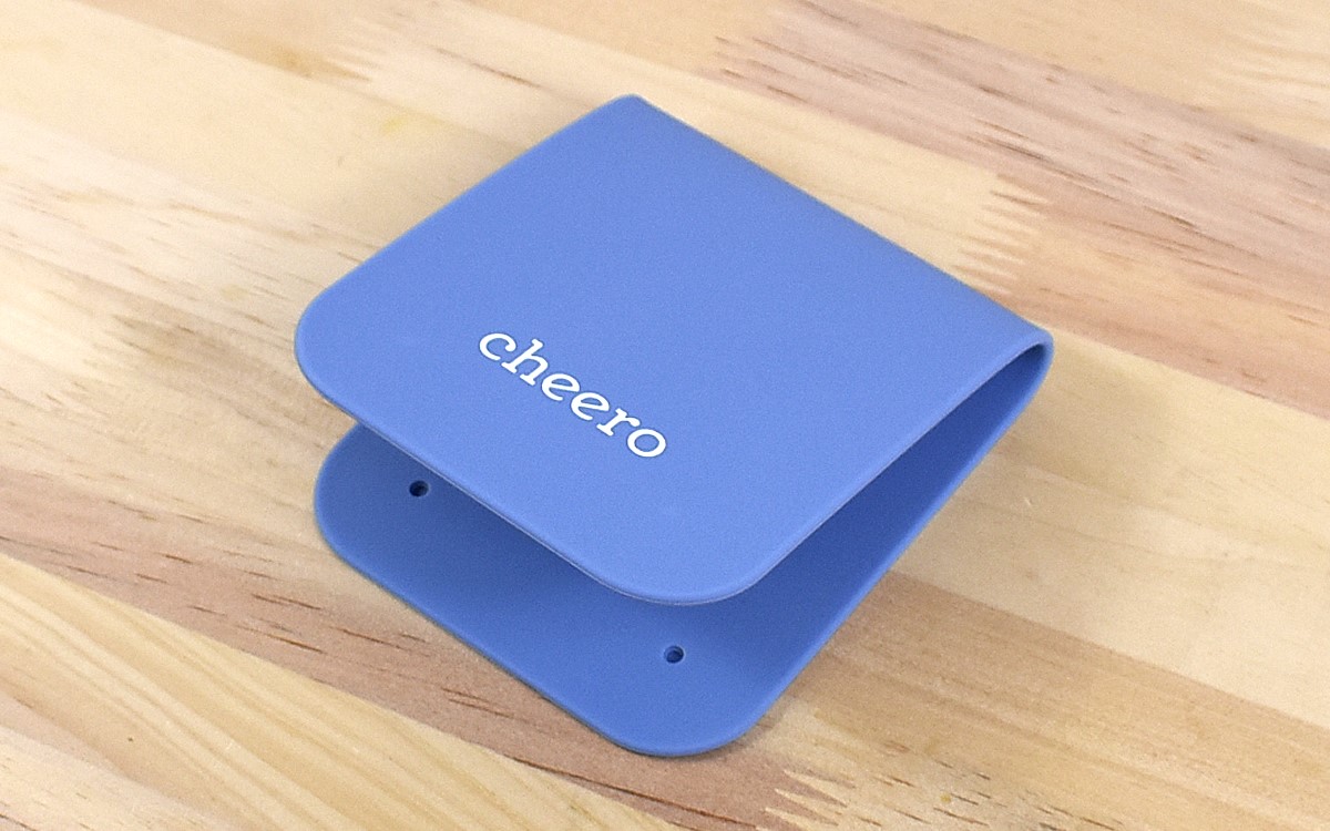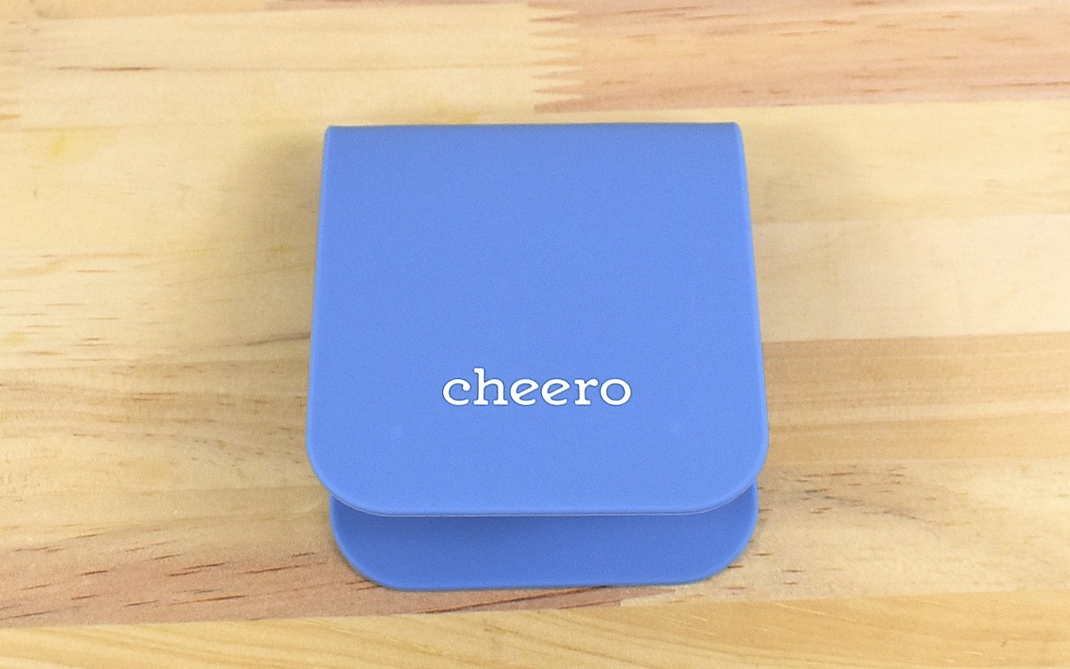 薄くて平たいシリコン製の板に、「cheero」とショップのロゴが入っている同商品。カラーは全部で3種類あり、今回私が選んだのはさわやかな「ブルー」です。