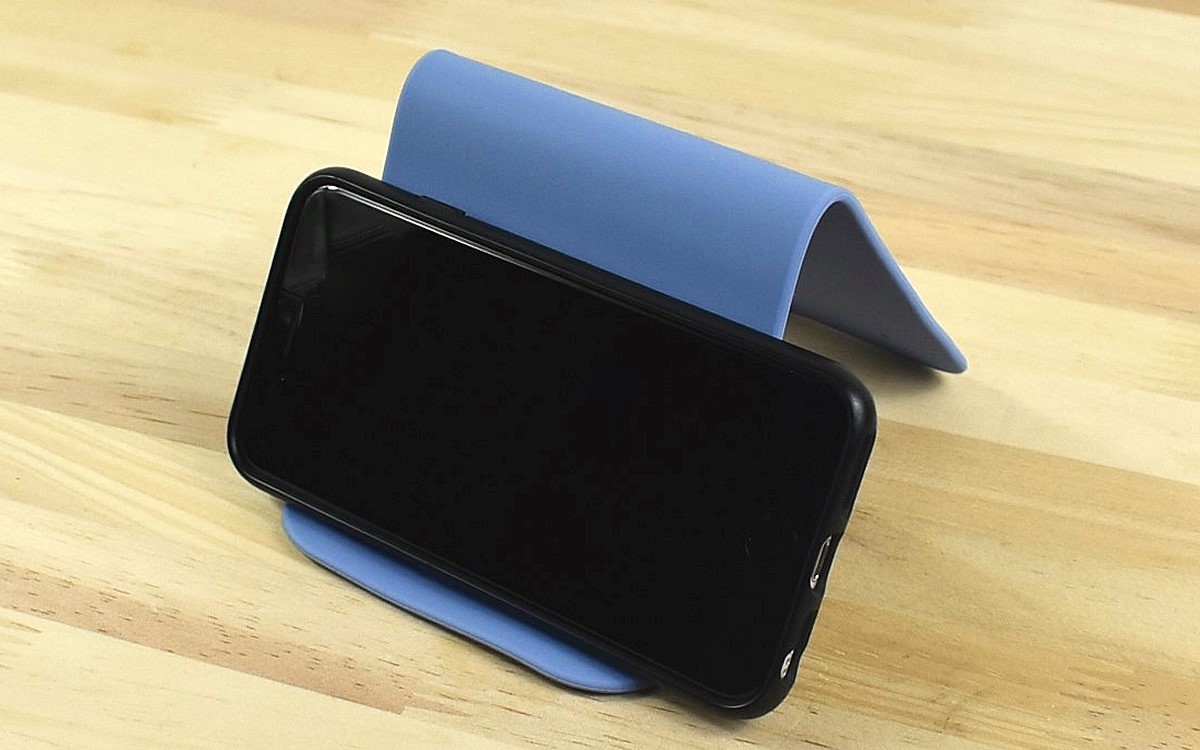 大きめサイズのおかげでタブレットの重量にも耐えられるうえに、折り方を工夫すればバッグハンガーやメガネ置きに変身。シリコンの質感がすべり止め代わりにもなり、耐久性も抜群です。